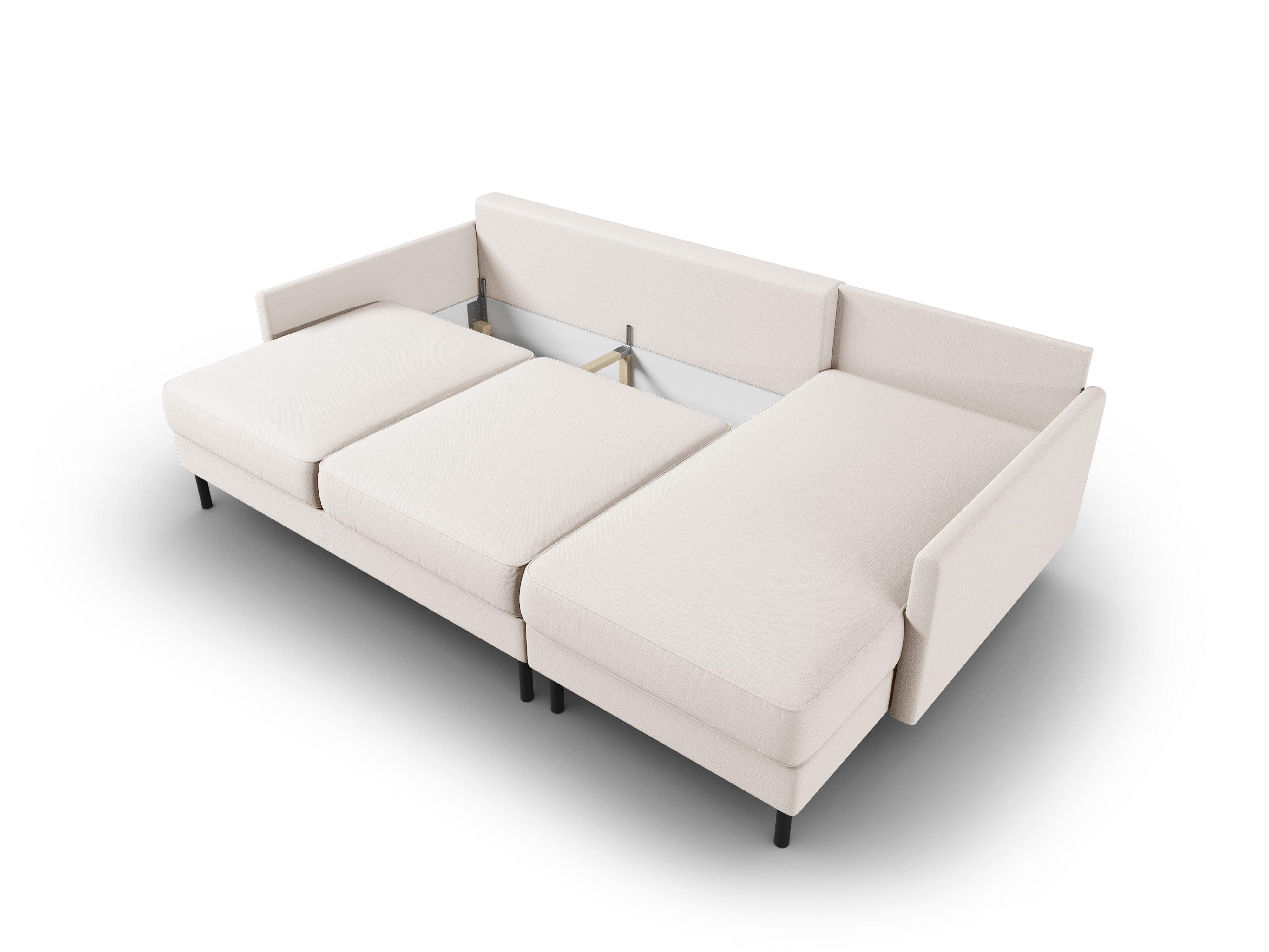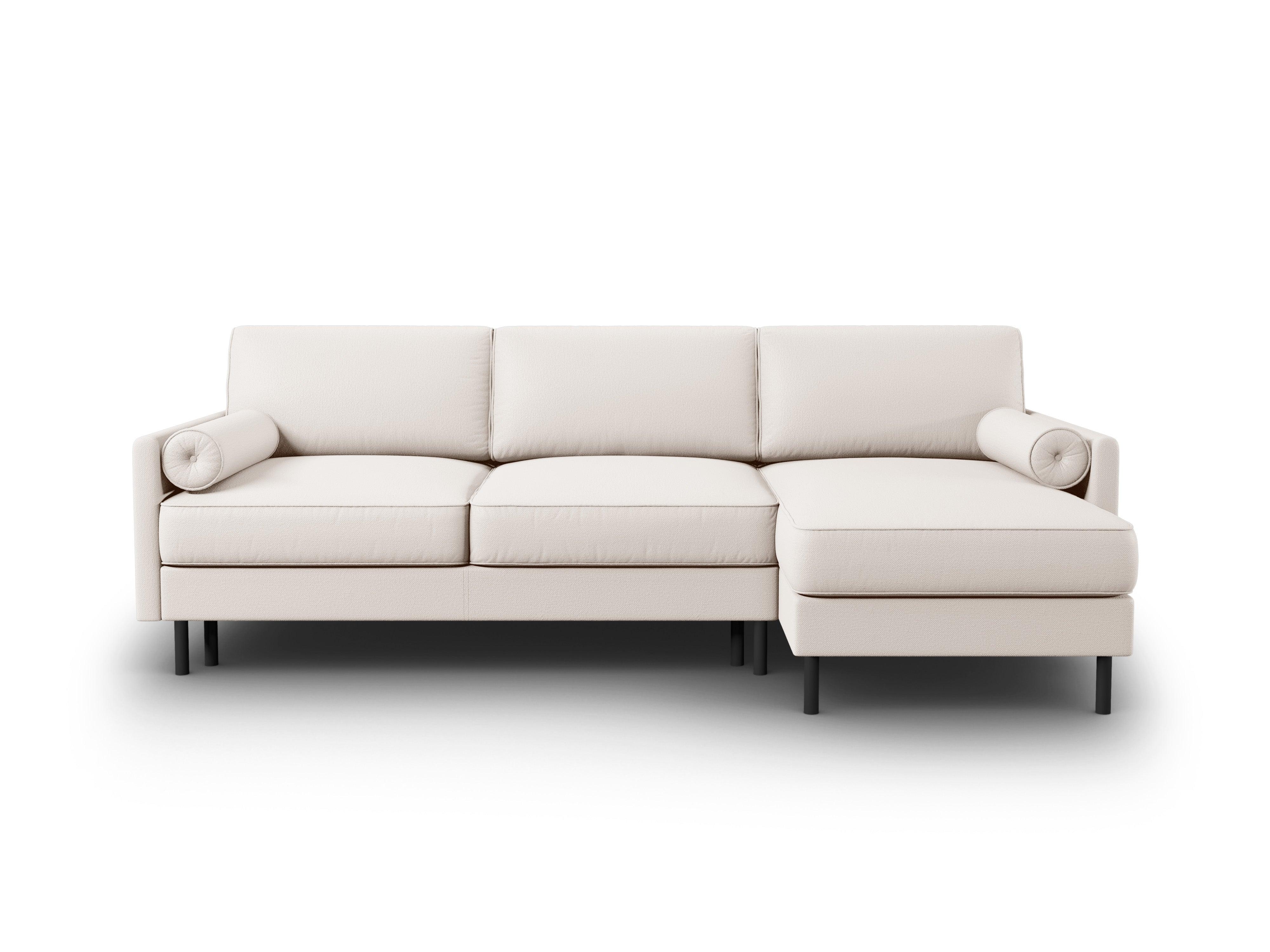 Ecksofa Scott ist ein ausziehbares Sofa für fünf Personen, ideal für Familien und Personen, die ein bequemes und stilvolles Möbelstück für ihr Zuhause suchen. Die Ecksofa ist in eleganten Farben erhältlich und mit schwarzen Metallbeinen ausgestattet, die ihm einen modernen Charakter verleihen. Kunden haben die Möglichkeit, die Seite des Ausziehens des Sofas zu wählen, sodass sie es an ihre Bedürfnisse und die Anordnung im Raum anpassen können.