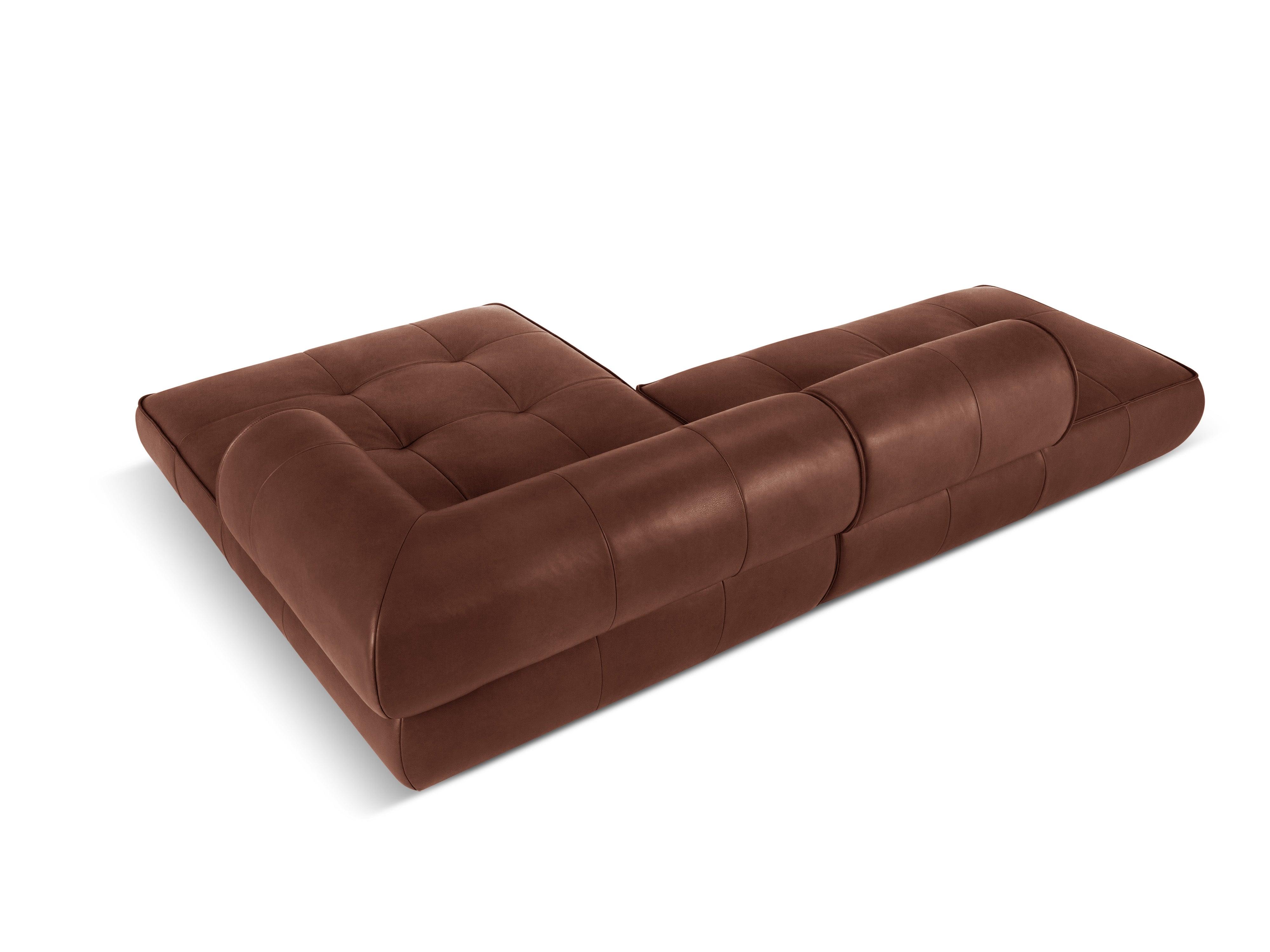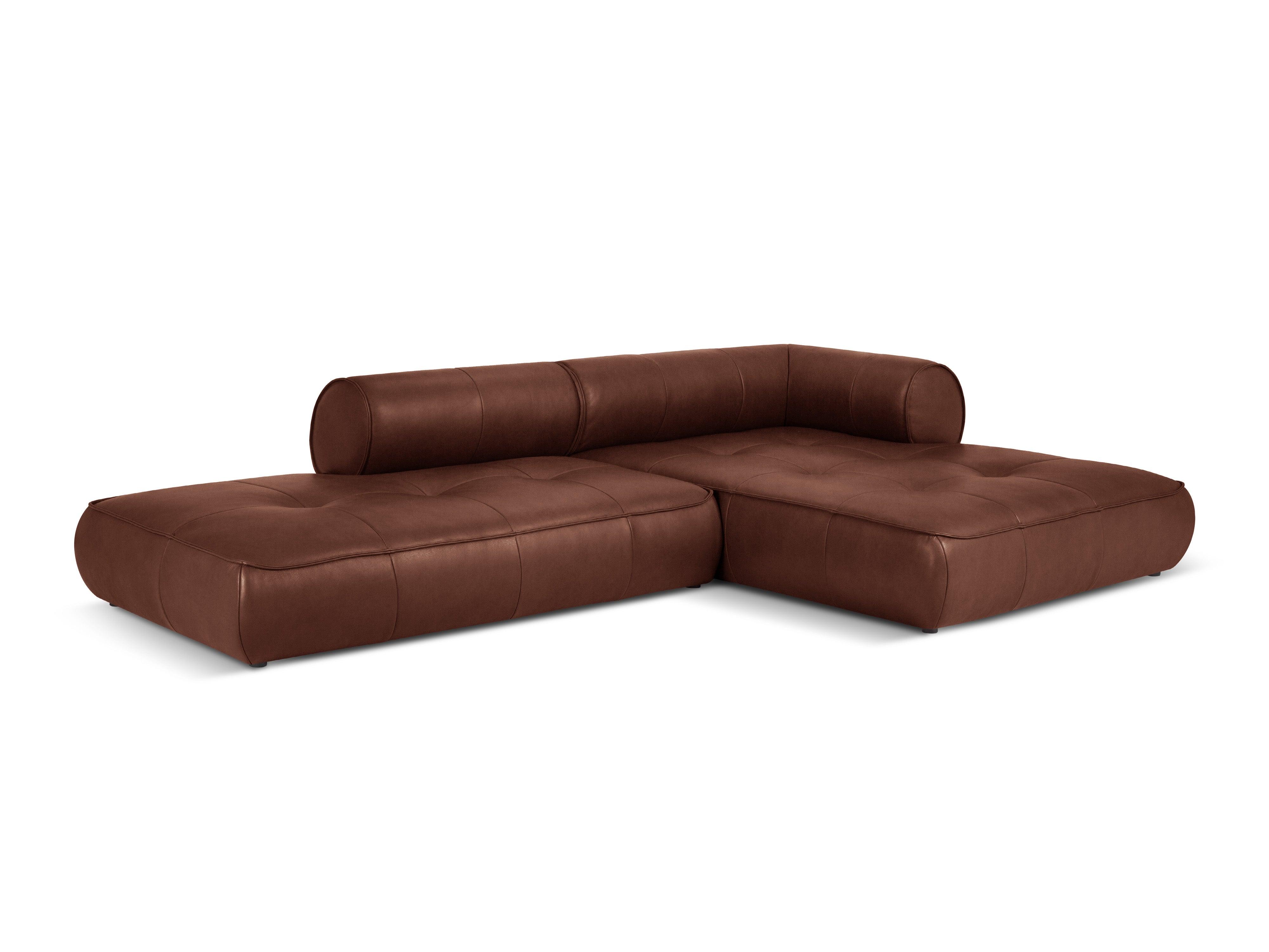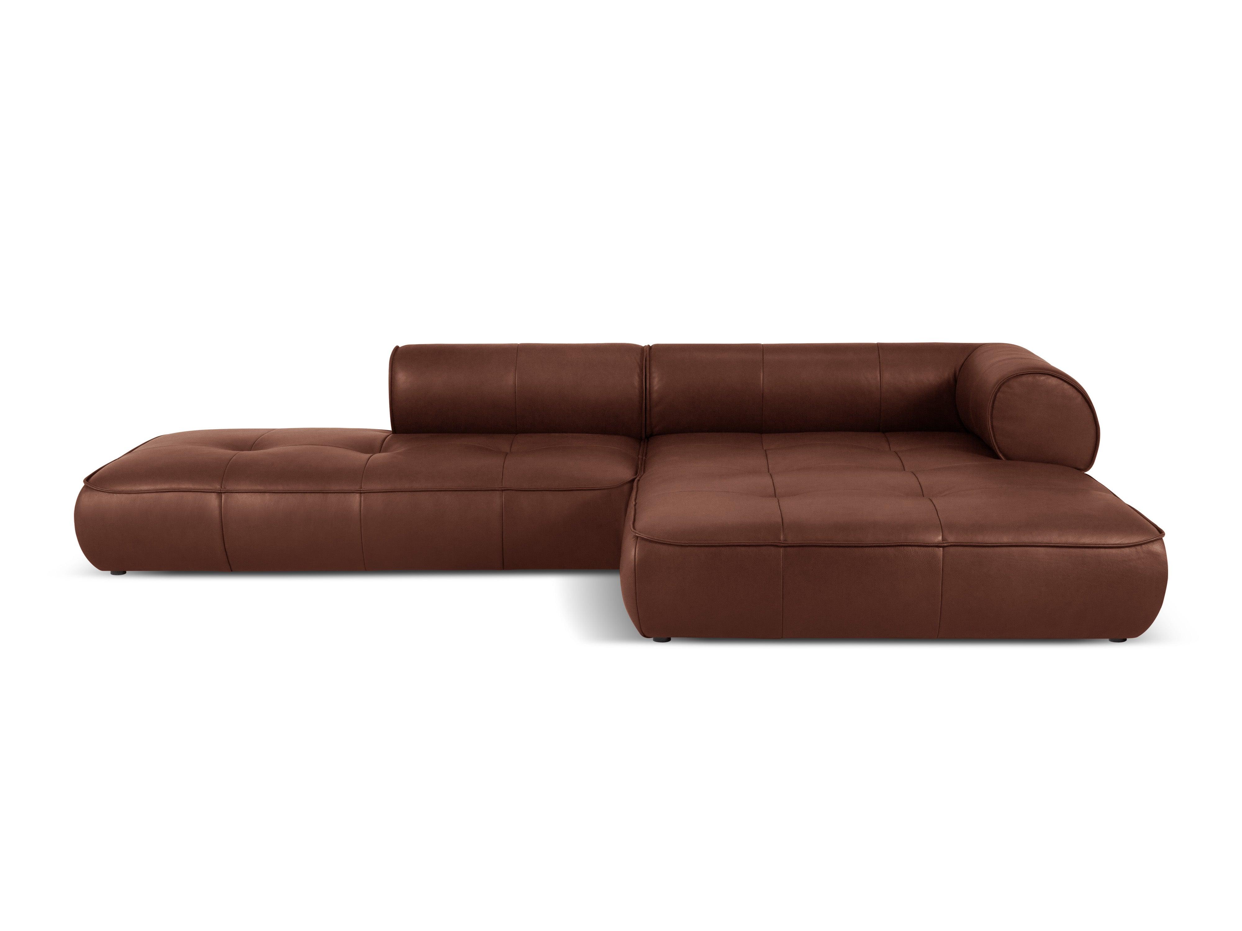 Leder-Ecksofa für vier Personen Lily verleiht jedem Raum einen Hauch von zeitloser Eleganz. Die außergewöhnliche Form ist das Ergebnis eines modernen Ansatzes für klassische Ledermöbel. Die abgerundeten Kanten der Sitzflächen haben eine äußerst originelle Form, und die stilvollen Rückenlehnen sorgen für den richtigen Komfort beim Entspannen.