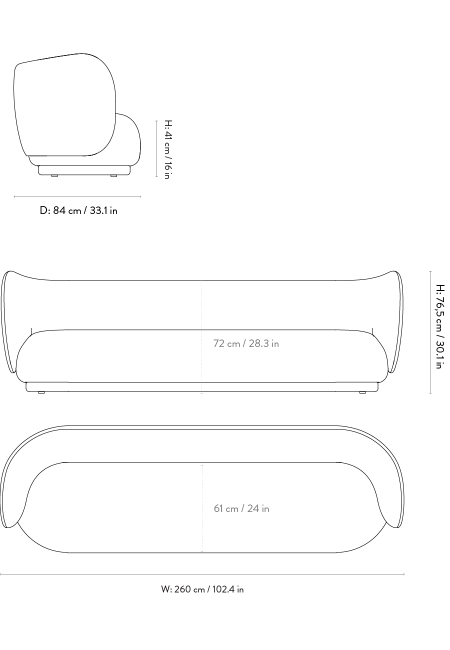 Material: Verblasste Samt. 51% Acryl, 40% Polyester und 9% Viskose. Zurück: Schaum mit einer inneren Stahlstruktur gebildet. Sitz: PU -Schaum mit einer inneren Holzstruktur. Beine: Polyethylen mit geringer Dichte