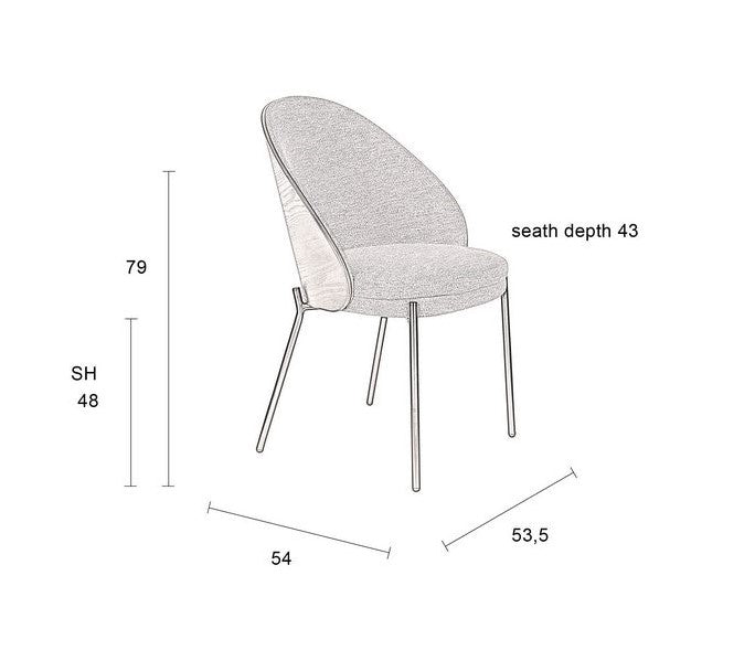 Material: 100% Polyestergewebe, Rückenlehne aus Aschefurnier, pulvermalen Metallbeinen.