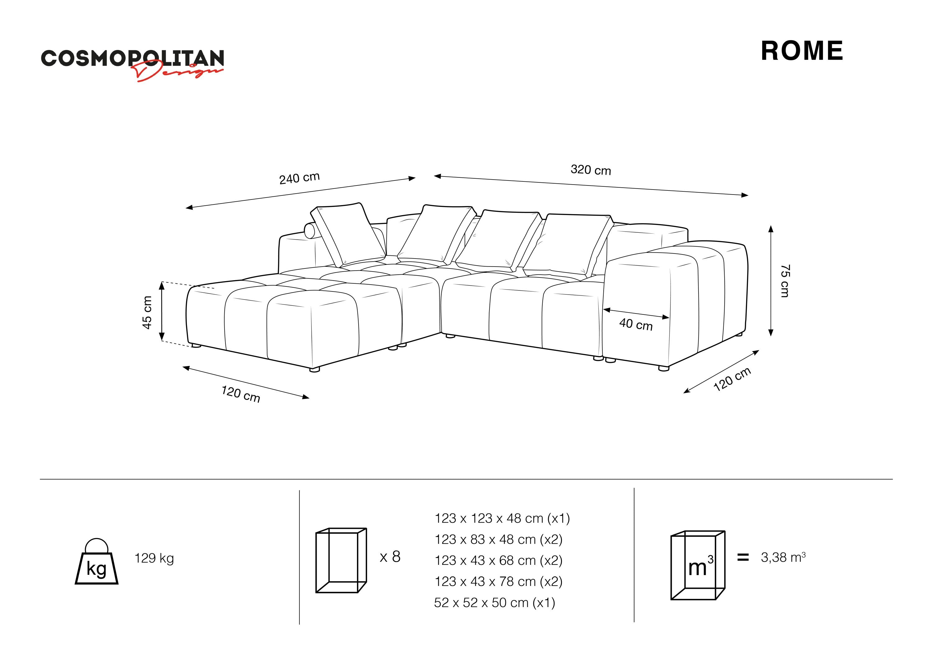 ROME ist eine außergewöhnliche Verbindung von Eleganz, Komfort und Modernität. Das Sofa ist mit einem schönen, luxuriösen Stoff bezogen, und seine einzigartige Farbe schafft unzählige Gestaltungsmöglichkeiten. Das Sofa sieht nicht nur großartig aus, sondern fühlt sich auch sehr angenehm an und ist abriebfest.