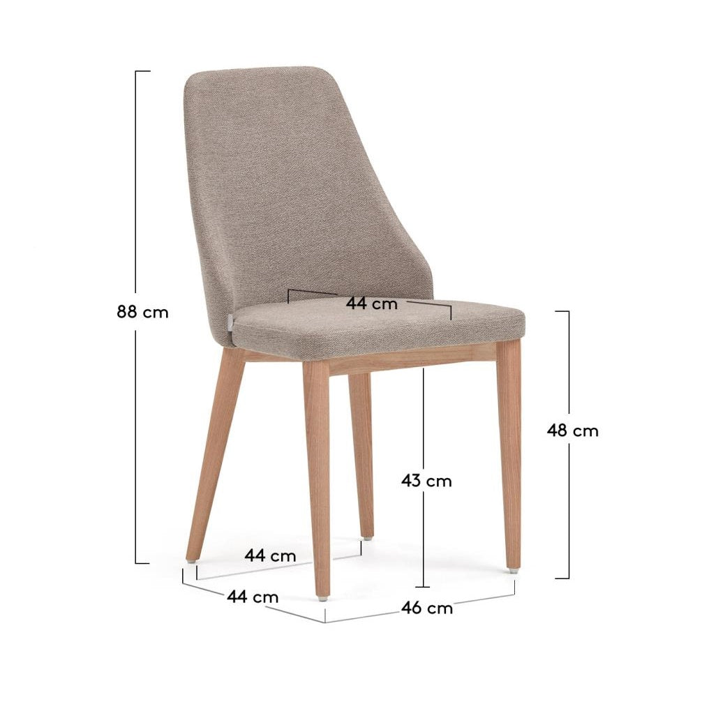 Der braune Stuhl Rosie mit pflegeleichter Chenille ist die Wahl für diejenigen, die sowohl Stil als auch Praktikabilität schätzen. Die ergonomische Rückenlehne, die den unteren Rücken umschließt, sorgt nicht nur für Komfort, sondern unterstützt auch eine gesunde Haltung, was das Sitzen selbst über längere Zeit angenehm macht. Die Beine aus massivem Eschenholz verleihen dem Stuhl natürlichen Charme und sorgen gleichzeitig für eine robuste Konstruktion. Die innere Struktur basiert auf Holz, das mit E0-Technologie mit niedrigen Formaldehydemissionen hergestellt wurde, was das Umweltbewusstsein der Marke und Ihre Gesundheit unterstreicht.