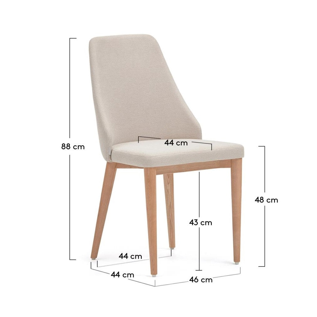 Beiger Stuhl Rosie mit pflegeleichter Chenille ist die Wahl für diejenigen, die sowohl Stil als auch Praktikabilität schätzen. Die ergonomische Rückenlehne umschließt den unteren Rücken und sorgt nicht nur für Komfort, sondern unterstützt auch eine gesunde Haltung, sodass das Sitzen selbst über längere Zeit angenehm wird. Die Beine aus massivem Eschenholz verleihen dem Stuhl natürlichen Charme und sorgen gleichzeitig für eine robuste Konstruktion. Die innere Struktur besteht aus Holz, das mit E0-Technologie mit niedrigen Formaldehydemissionen hergestellt wurde, was das Umweltbewusstsein der Marke und Ihre Gesundheit unterstreicht.