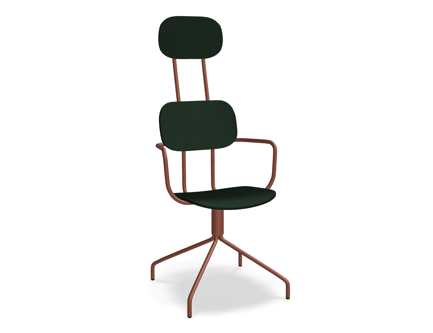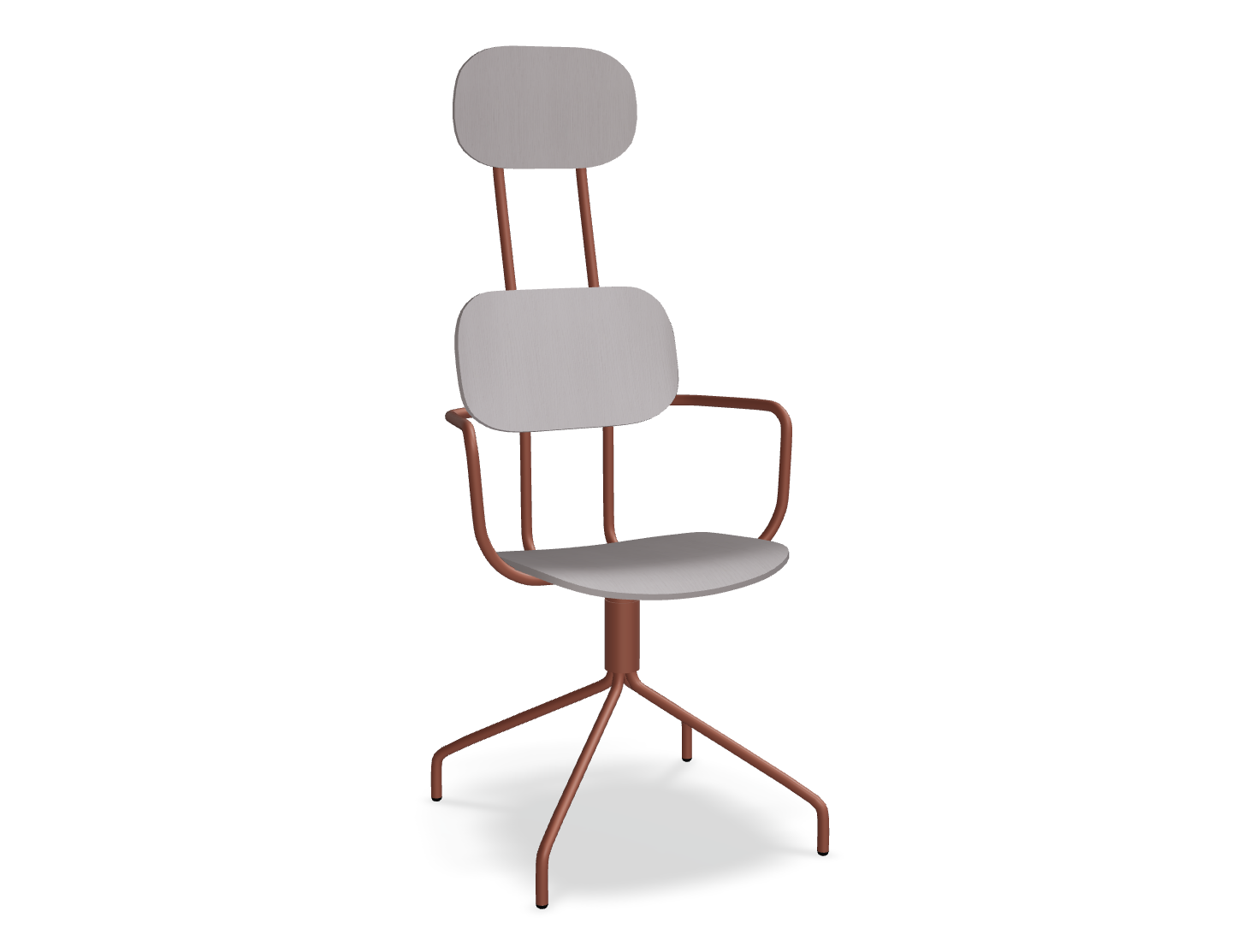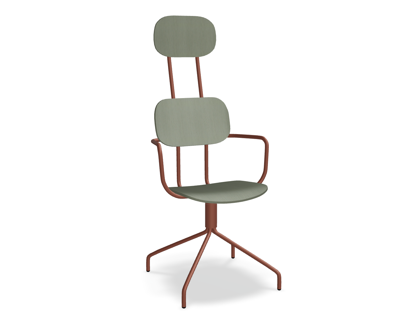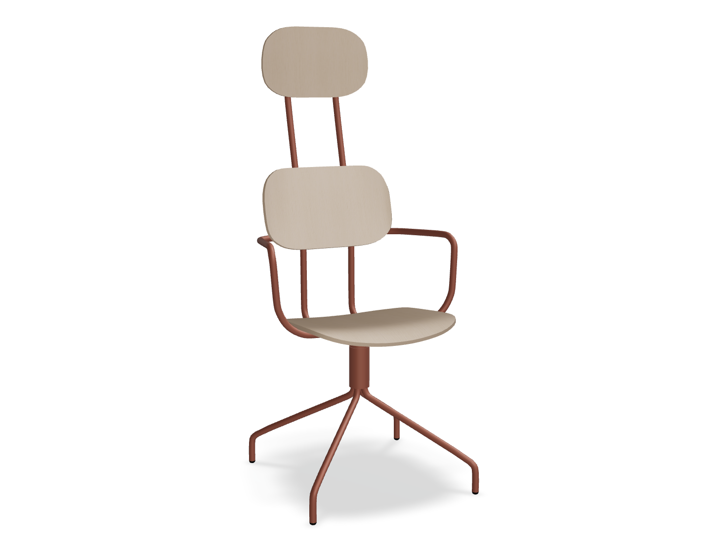 Drehstuhl Die neue Schule mit einer Kopfstütze, die von Studio mit Liebe entworfen wurde, zieht die Aufmerksamkeit mit einer modernen Form mit doppelter Unterstützung auf sich. Diese Rückenlehne betont nicht nur das moderne Design, sondern bietet auch eine hervorragende Unterstützung für den gesamten Rücken. Die rotierende Basis garantiert die Bewegungsfreiheit, und optionale Armlehnen erhöhen den Nutzungskomfort weiter. Die Sperrholzversion zeichnet sich durch Haltbarkeit und Leichtigkeit der Pflege aus, was sie zu einer idealen Wahl für den Raum viele Menschen macht.
