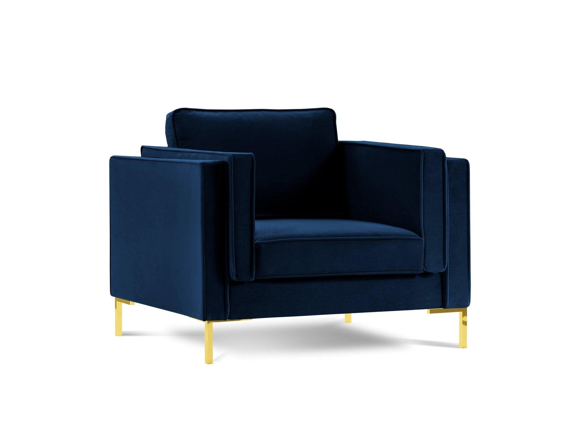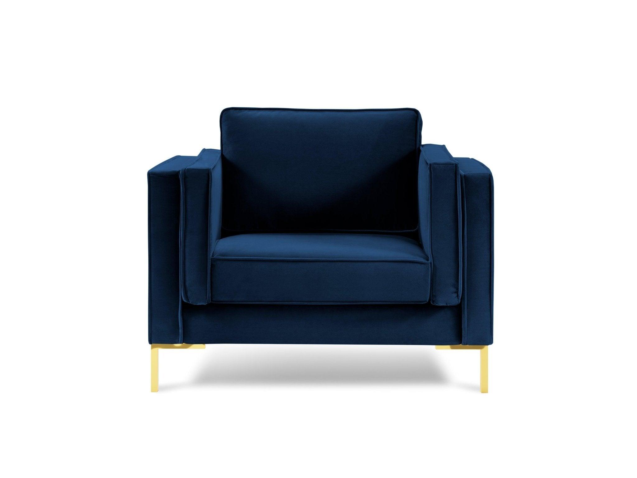 Luis ist ein bequemer Sessel, der die perfekte Ergänzung für ein elegantes Wohnzimmer oder Büro darstellt. Die moderne Form vereint minimalistisches Design und Funktionalität. Die solide Konstruktion basiert auf metallenen Beinen, die der gesamten Form Leichtigkeit verleihen. Der Bezug aus samtigem Material ist angenehm im Griff und besonders abriebfest.