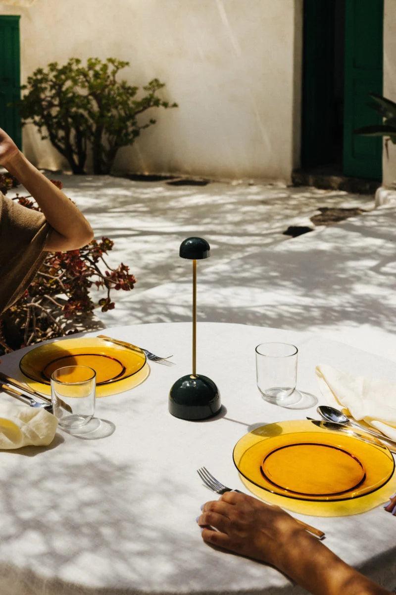 Frei von Kabeln, Licht, mit einfacher Struktur und neutraler Farben wird dieses Design zu einem diskreten Teil der Tabelle, ohne formale oder chromatische Exzesse. Das Objekt ist maximal vereinfacht, was eine einfache Platzierung und Mobilität ermöglicht und eine gute Beleuchtung in Restaurants, Bars, Cocktailbars, Terrassen und Terrassen bietet.