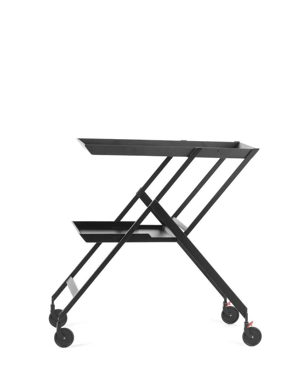 Wagen Plico, das in den 70er Jahren von Richard Sapper entworfen wurde, ist eines der weniger bekannten, wenn auch sehr charakteristischen Projekte dieses einzigartigen Künstlers. Dank der Einfachheit des Service und der kompakten Abmessungen nach der Faltung ist Plico sowohl als Tisch am Bett oder Sofa als auch als AS perfekt Trolley zum Servieren von Mahlzeiten. Seine Vielseitigkeit macht es zu einer idealen Ergänzung für jedes Innenraum.