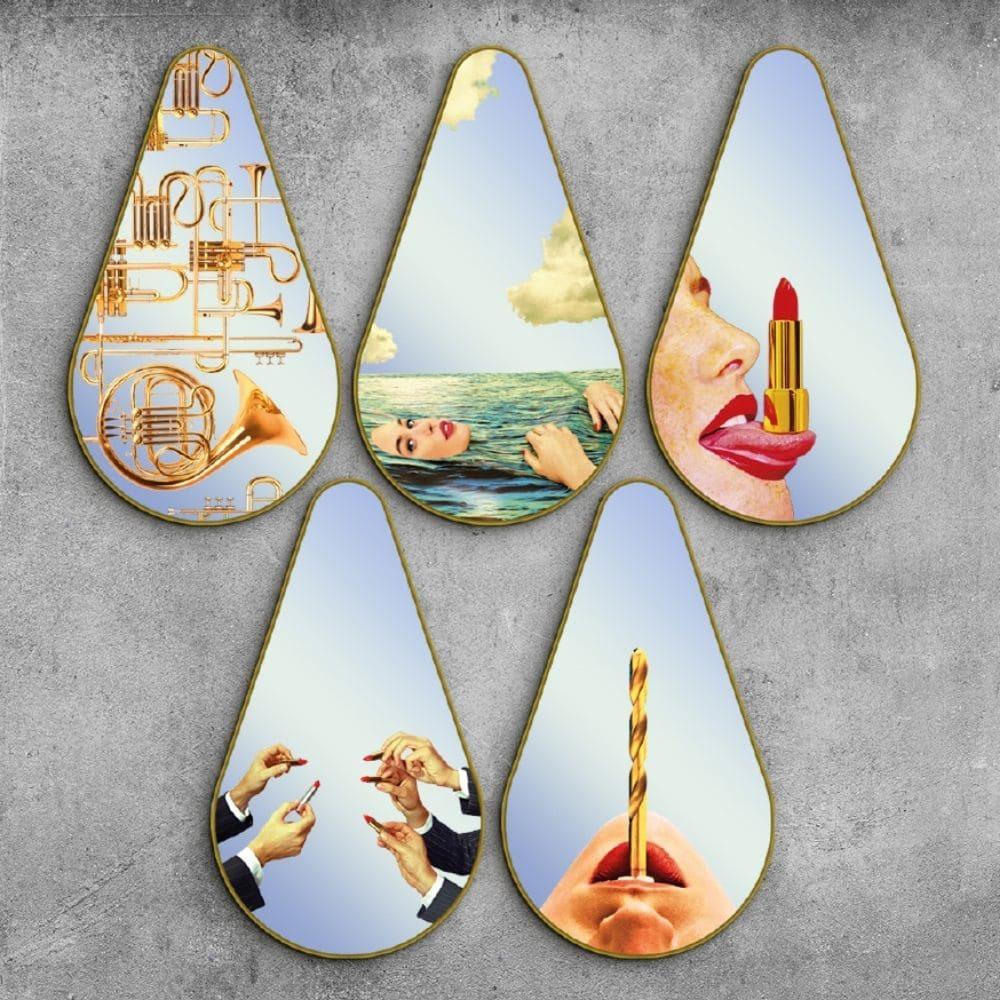 Einzigartiger Spiegel In dem goldenen Rahmen ist es Teil einer einzigartigen Sammlung, die vom italienischen König von Avant -Gärte Seletti und dem Toileletpaper -Magazin erstellt wurde. Interessante, leicht kontroverse Collage, Wie ein Tor zu einer anderen surrealen Dimension verleiht es dem Innenraum einen einzigartigen Charakter.