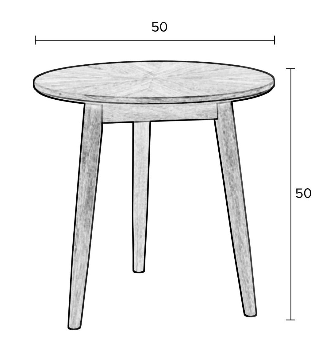 Seitentisch Fabio ist eine gute Wahl für moderne Innenräume. Das elegante, runde Oberteil mit einem Durchmesser von 50 cm bietet eine ideale Oberfläche für eine Lampe, ein Buch oder eine Tasse Kaffee. Die feste Konstruktion mit vier runden Beinen unter der Arbeitsplatte garantiert Stabilität und Haltbarkeit. Das Oberteil besteht aus MDF mit einem abgelegenen Holz, das den Tisch für Charme und Eleganz verleiht. Tisch Fabio passt gut zu verschiedenen Innenarchitekten, von modern bis klassisch und loft. Es ist ein ideales Möbelstück, das jedem Wohnzimmer einen modernen Akzent einführt.