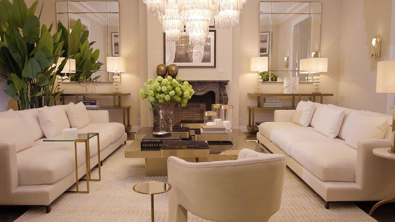 Fotel w tkaninie boucle DONATO kremowy z mosiężną podstawą Eichholtz    Eye on Design
