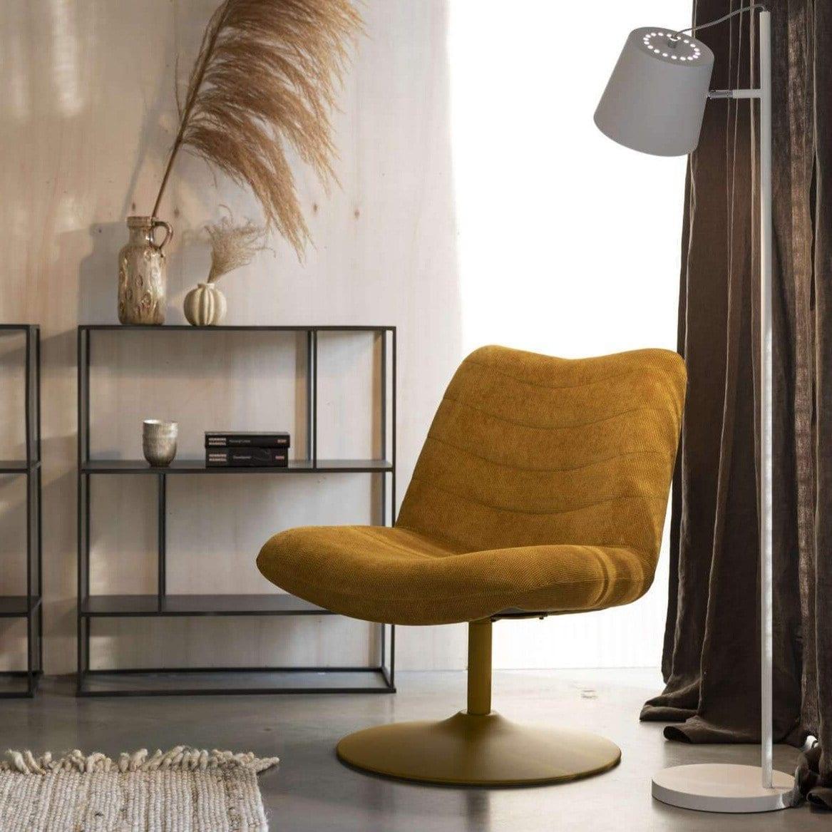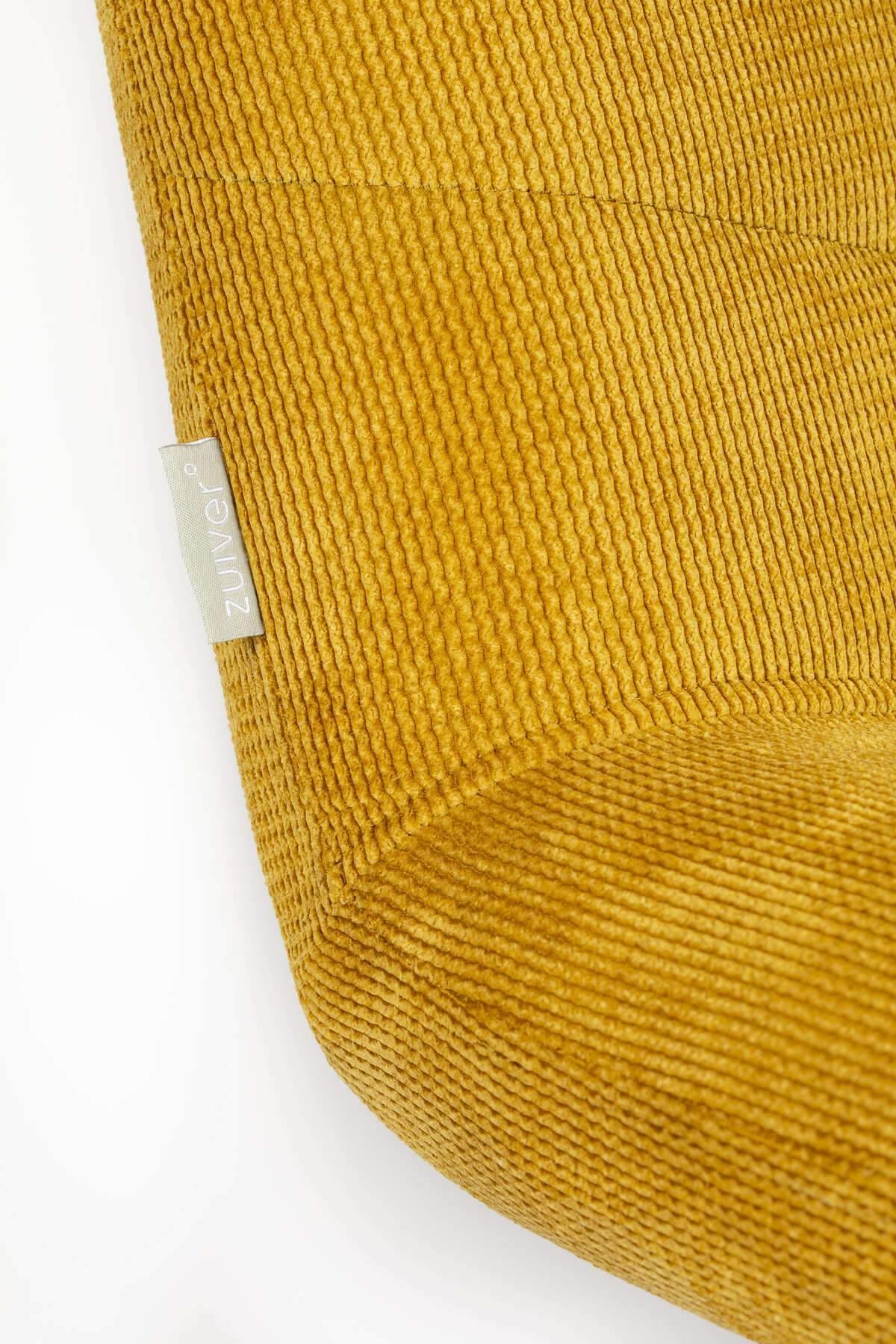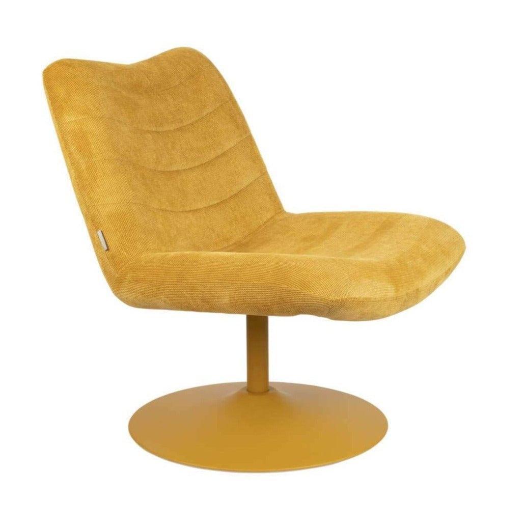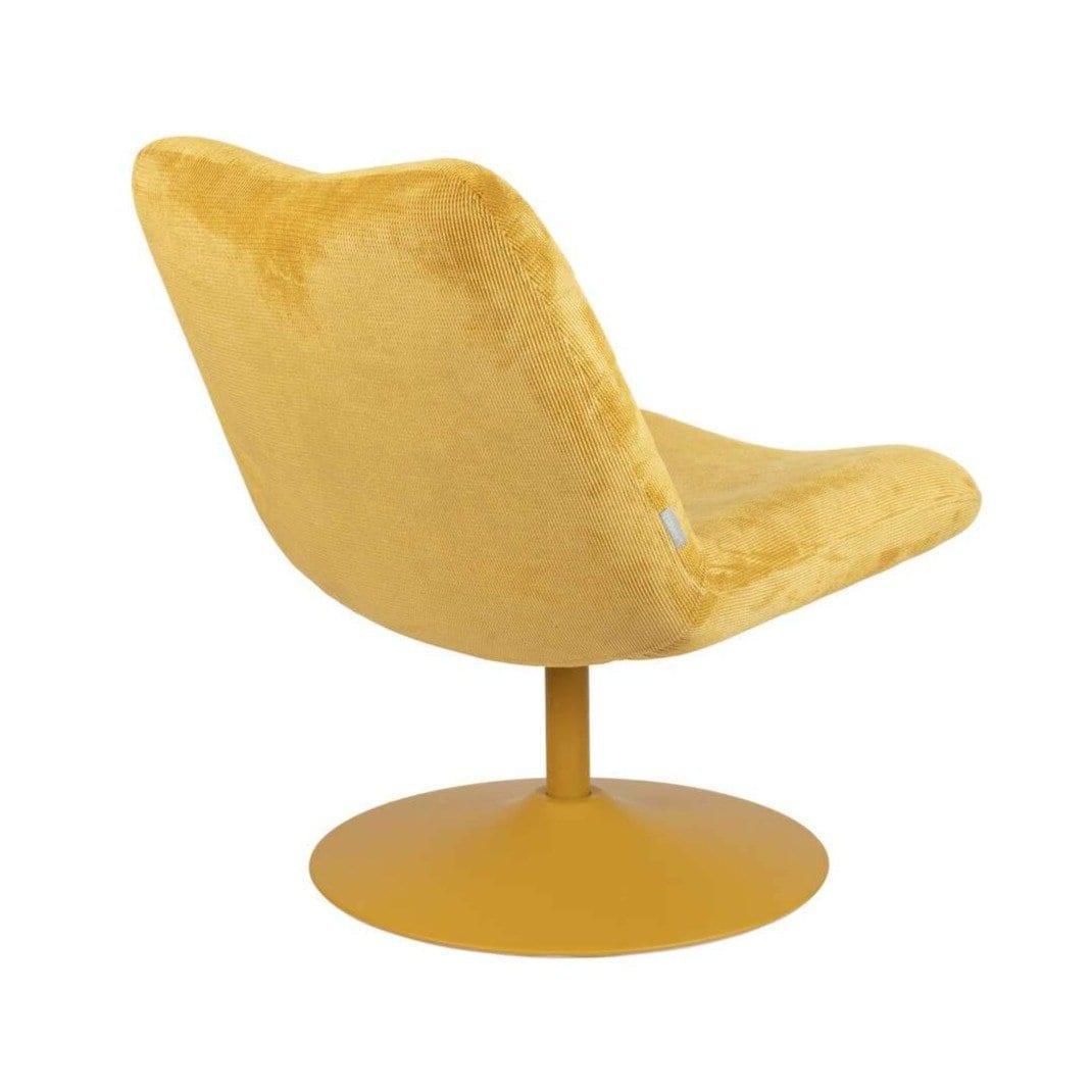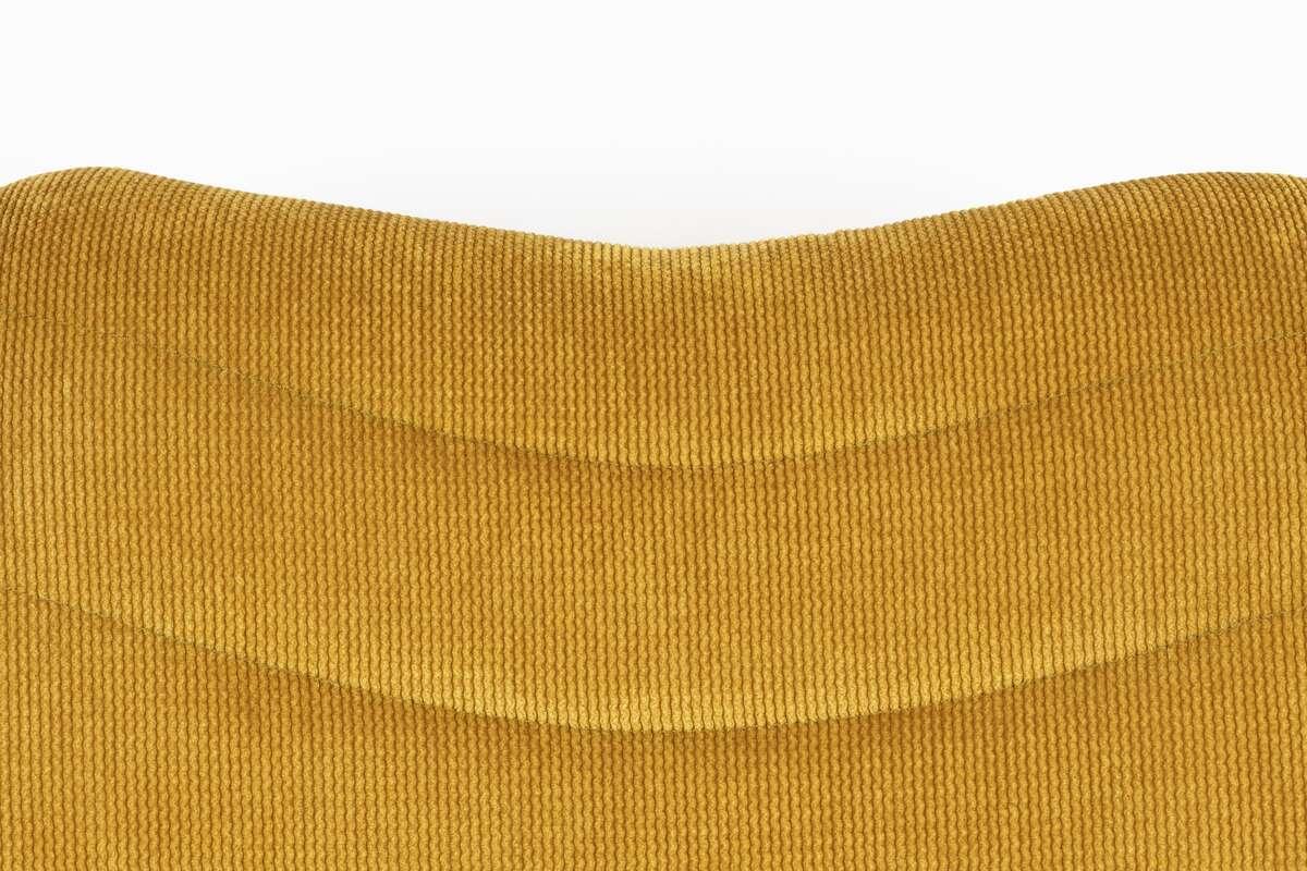Sessel Bubba ist eine großartige Kombination aus Komfort und einzigartigem Design. Die ergonomisch geformte Sitzfläche ist mit einem senfgelben, samtigen, äußerst angenehmen Material bezogen, das durch horizontale Nähte verziert wird. Das Ganze wird von einem subtilen, runden Fuß gestützt, der die gleiche Farbe wie der Bezug des Sessels hat.
