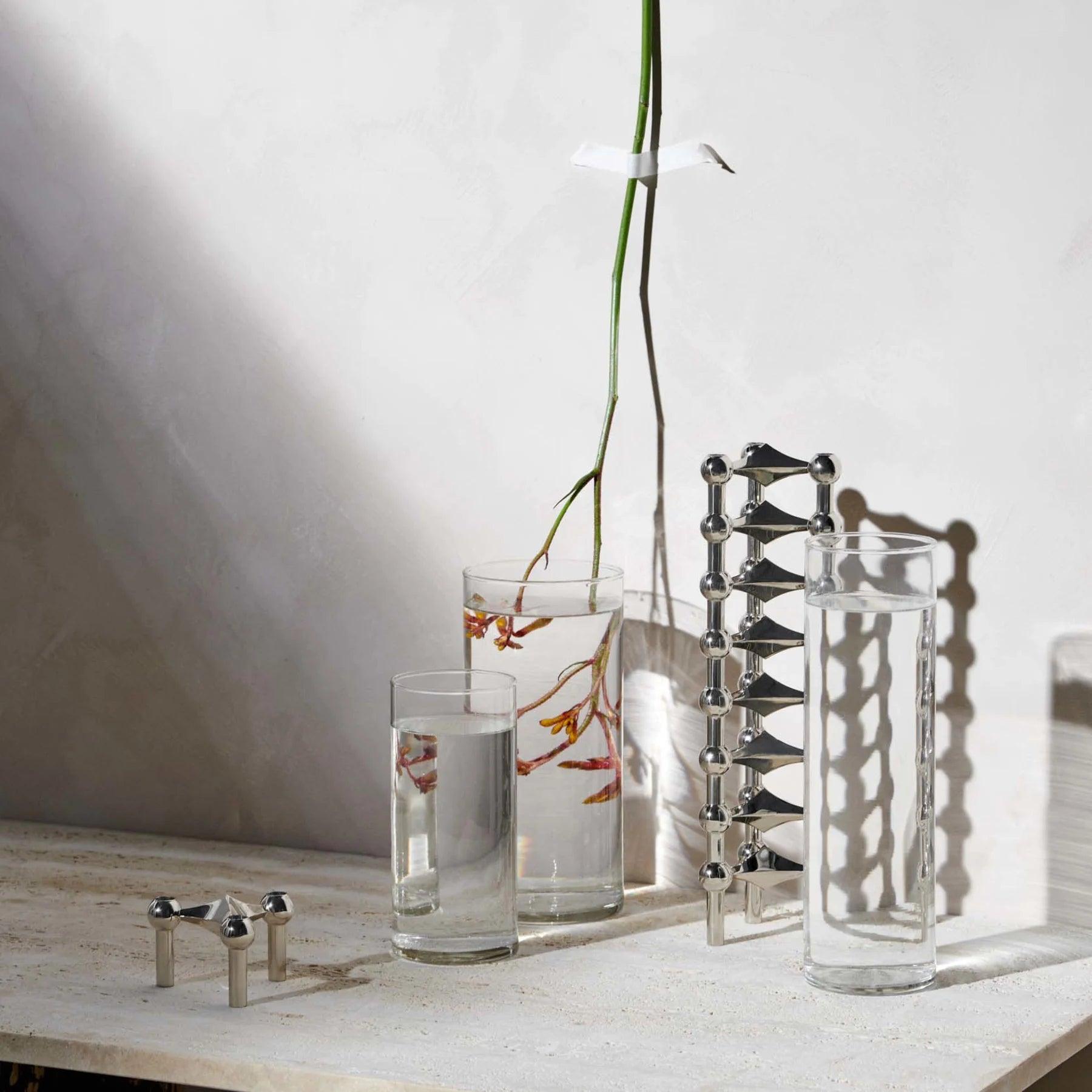 Set aus drei Kerzenhaltern in verchromter Ausführung ist ein ikonisches Design von Stoff Nagel, das den Innenräumen in Häusern auf der ganzen Welt Ausdruck verleiht — es kann zu einer plastischen Skulptur werden, die die Form entsprechend der Vision des Besitzers annimmt. Man kann es gestalten und mit anderen Modellen von Stoff Nagel kombinieren und mit konischen Kerzen verwenden oder es einfach als dekorative Skulptur stehen lassen.