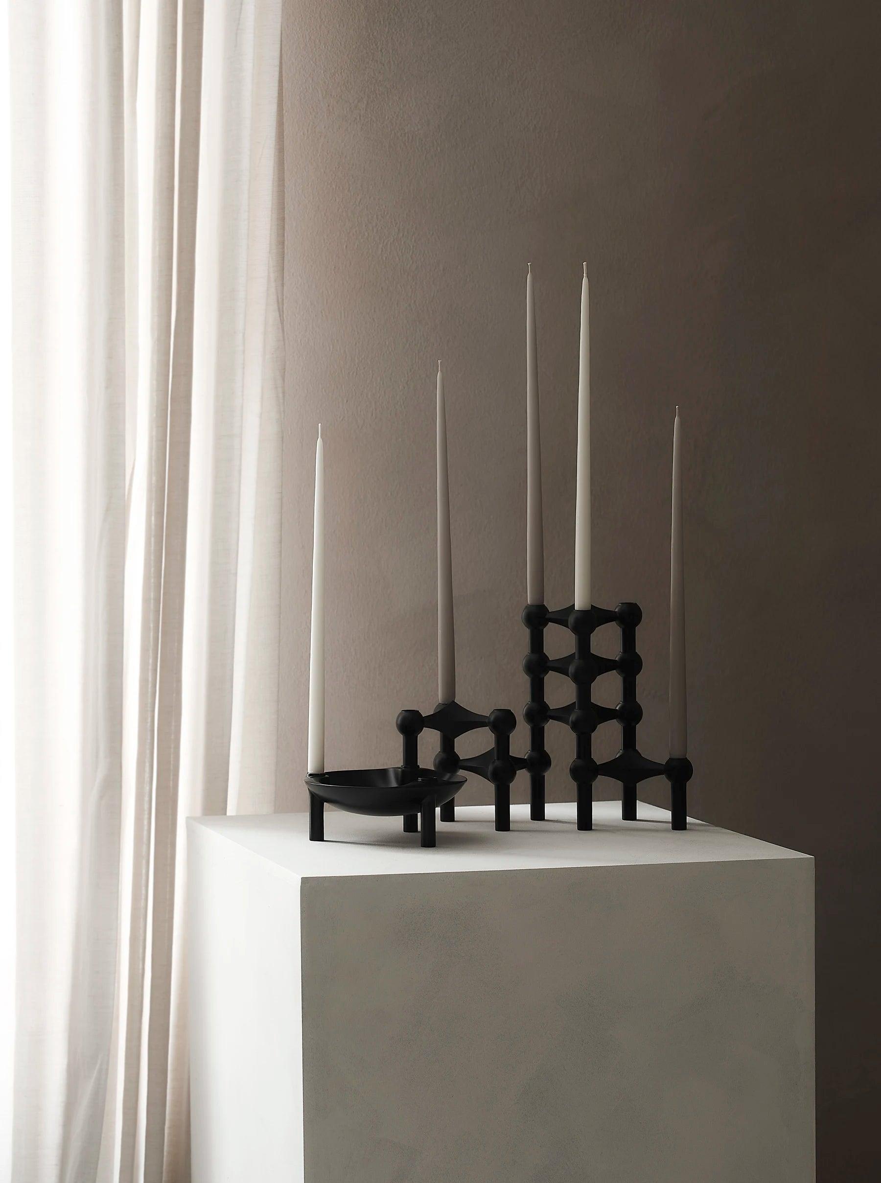 Stoff Nagel ist eine dänische Marke, die für den kultigen Designklassiker der 60er Jahre, den Kerzenhalter S22, verantwortlich ist. Das Projekt wurde von dem Architekten Werner Stoff für seinen guten Freund Hans Nagl, den Eigentümer eines Familienunternehmens, das sich auf metallene Wohnaccessoires spezialisiert hat, entworfen. Heute sind ihre modularen Kerzenhalter eines der bekanntesten Elemente des Mid-Century Modern Stils.