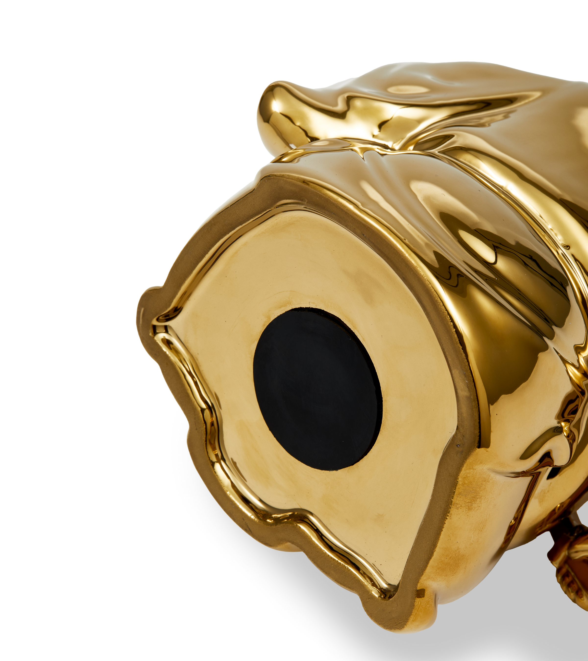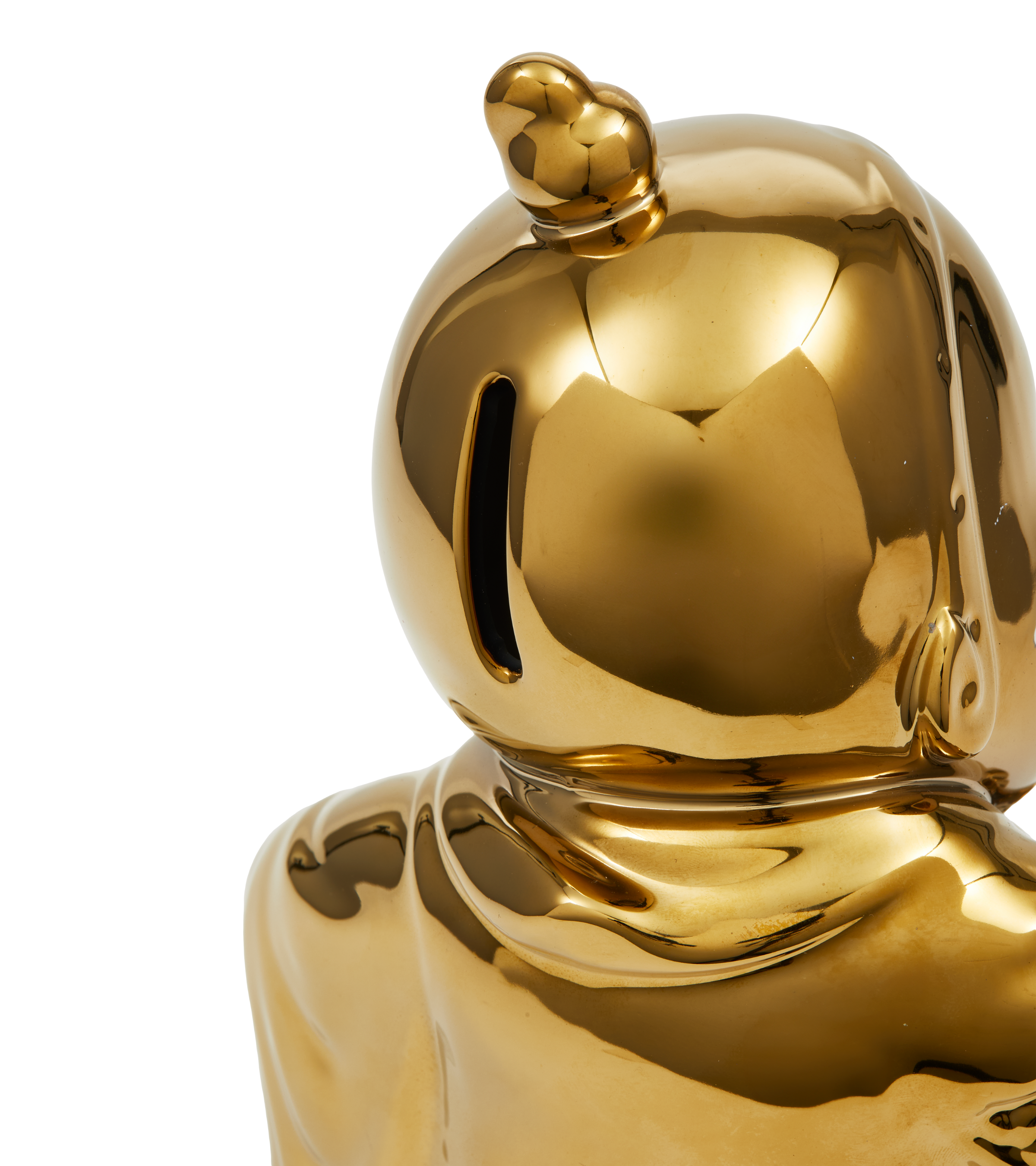Die aus Dolomitkeramik gefertigte und mit Glasur überzogene Spardose begeistert durch Form und Detailreichtum. Perfekt für Interieurs mit Charakter – als persönlicher Talisman, Geschenk mit Botschaft oder Teil einer originellen Sammlung.