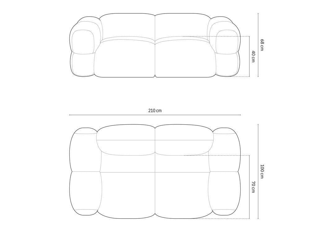 Sofa 3-Sitzer Loretto ist ein Möbelstück mit außergewöhnlich skulpturaler Form, das modernes Design mit maximalem Komfort perfekt verbindet. Ihre abgerundeten Linien, massiven Armlehnen und die tiefe Form schaffen eine charakteristische, erkennbare Silhouette, die Aufmerksamkeit auf sich zieht und ein Gefühl von Gemütlichkeit vermittelt. Dank ihrer harmonischen, geschwungenen Silhouette fügt sich die Sofa ideal in Wohn- und Geschäftsräume ein und wird zum natürlichen Mittelpunkt.