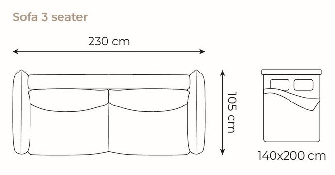 Wymiary funkcji spania: 200 × 140 cm