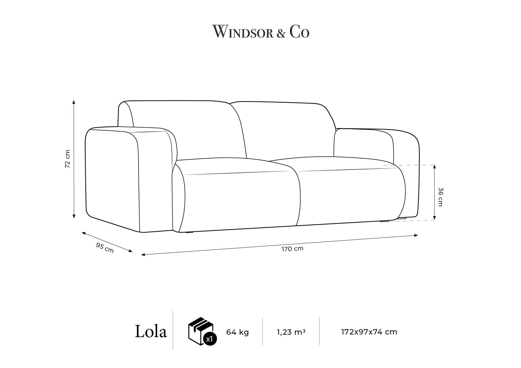 Dank ihrer kompakten Abmessungen und zwei Sitzplätzen eignet sich die Sofa Lola hervorragend für kleinere Räume und bietet einen angenehmen Ort zum Entspannen. Ihr modernes Aussehen und elegante Linie machen sie zu einer idealen Ergänzung für das Wohnzimmer, den Aufenthaltsraum oder sogar das Büro.