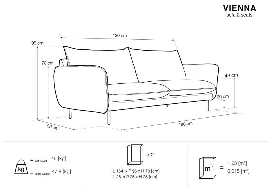 Sofa w tkaninie boucle 2-osobowa VIENNA beżowy ze złotą podstawą Cosmopolitan Design    Eye on Design