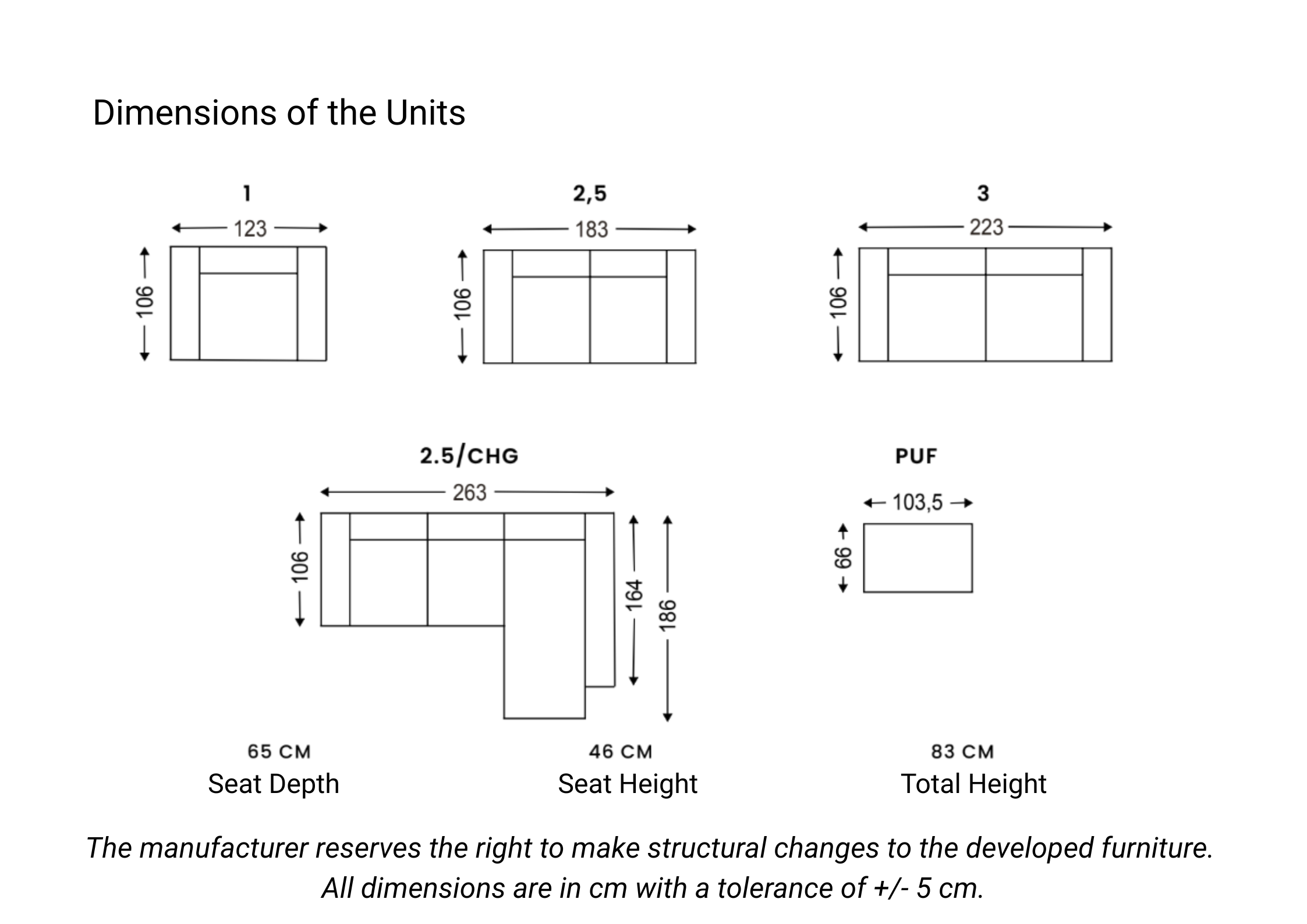 Die zulässige Toleranzgrenze für Polstermöbel beträgt ±4 cm. Diese Unterschiede ergeben sich aus den Eigenschaften der verwendeten Materialien und der Spezifik der Polsterung.