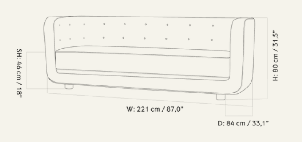 Sofa Vilhelm ist eine elegante, dreisitzige Sofa , die 1935 von Flemming Lassen entworfen wurde und zeitlosen Stil mit außergewöhnlichem Komfort verbindet. Ihre sanft abgerundete Form und die subtile Polsterung der Rückenlehne verleihen ihr einen gemütlichen und gleichzeitig raffinierten Charakter. Die Inspiration für das Design stammt aus dem Modernismus der Mitte des 20. Jahrhunderts, dessen Geist die Sofa durch harmonische Proportionen, Liebe zum Detail und edle Materialien perfekt verkörpert.