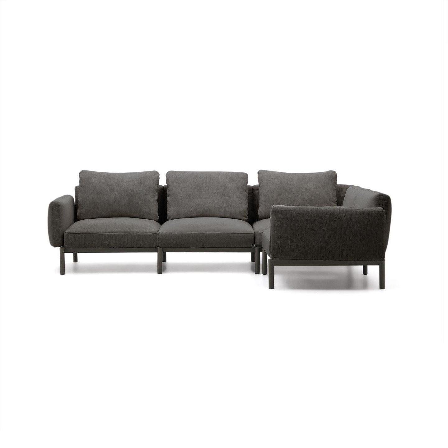 Dank ihrer modularen Bauweise bietet die graue Eckbank Sorells Ihnen die Möglichkeit, das Layout und die Größe nach Ihren Bedürfnissen anzupassen, sodass Sie den verfügbaren Raum optimal nutzen und eine ideale Umgebung zum Entspannen und für gesellige Zusammenkünfte im Freien schaffen können.