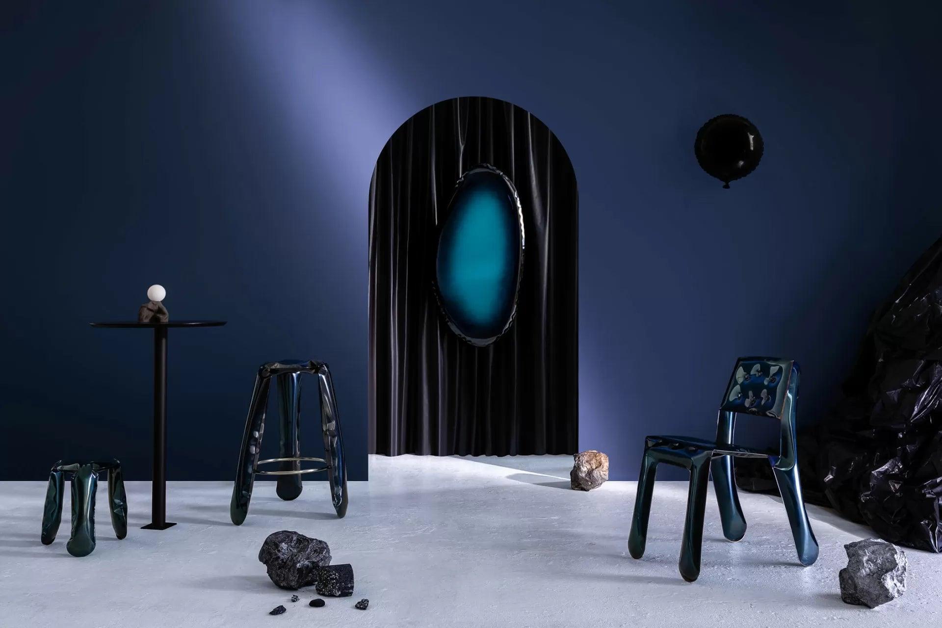 Dieser außergewöhnliche Stuhl dringt in den Raum ein, wie ein Held aus einer anderen Realität, und bringt einen Hauch neuer Energie und Unvorhersehbarkeit mit sich. Wie ein kleines Kind, das die Welt entdeckt, Chippensteel 0.5 überrascht uns ständig mit seinem außergewöhnlichen Charme und seiner vollen Ausdruckskraft.