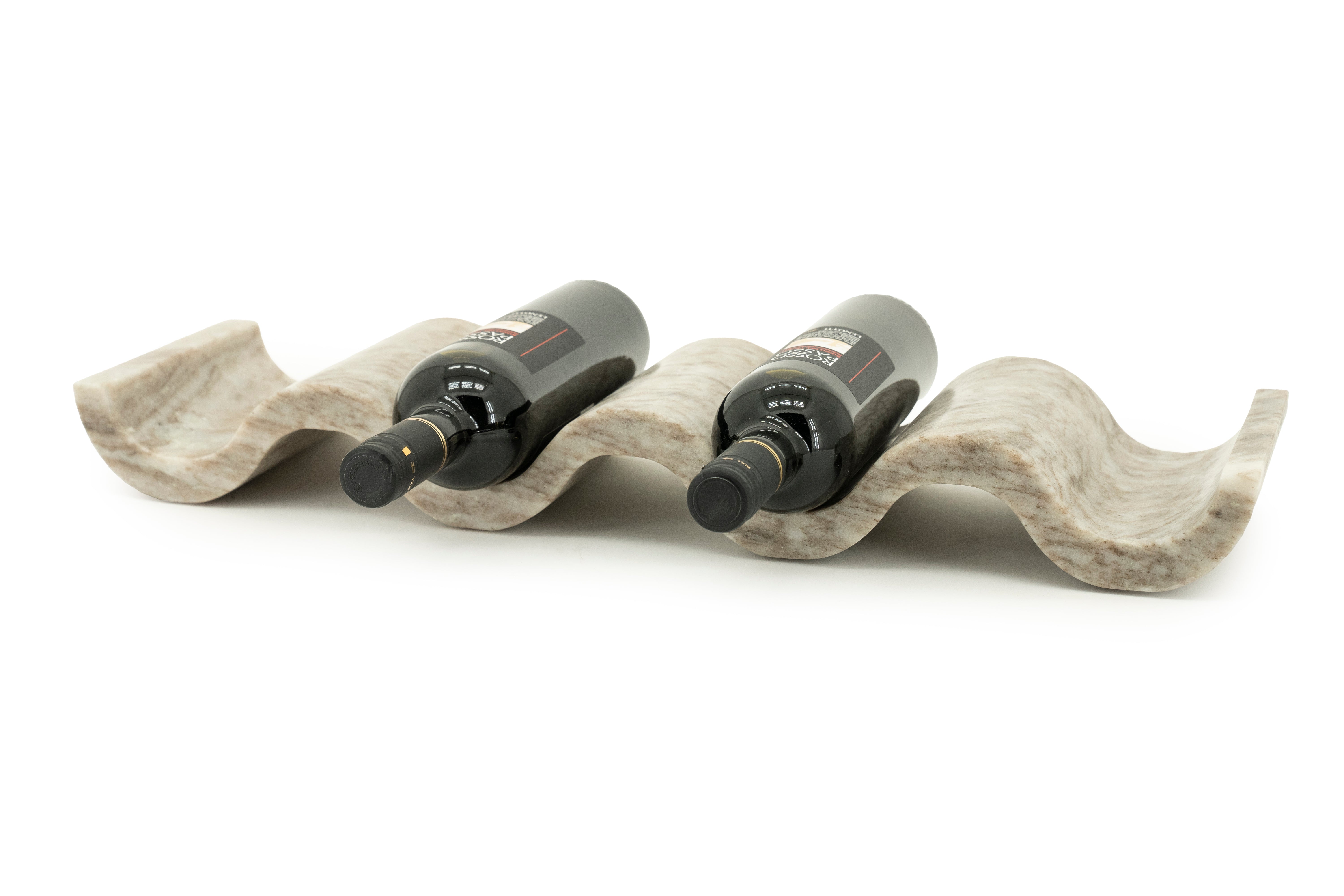Der Halter bietet Platz für mehrere Flaschen und präsentiert sich perfekt auf der Küchenarbeitsplatte, der Kommode oder im Essbereich. Jedes Exemplar ist einzigartig - Farbe und Muster des Marmors können leicht variieren, was ein natürliches Merkmal dieses edlen Materials darstellt.