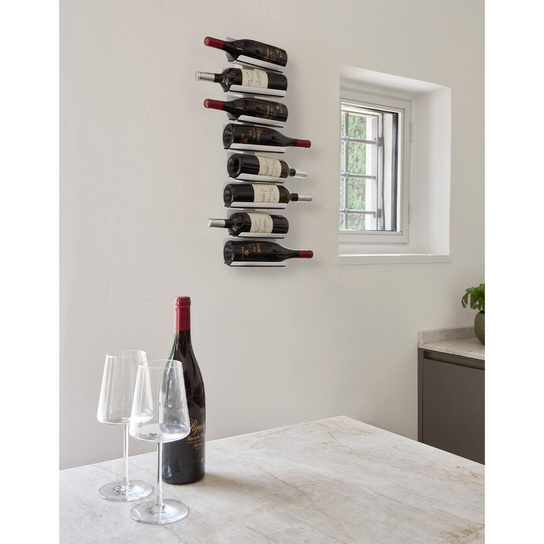 Ptolomeo Vino Wall ist ein eleganter und minimalistischer Weinregal, entworfen von Bruno Rainaldi, das dafür sorgt, dass die Flaschen in der Luft zu schweben scheinen. Dank seiner vertikalen, platzsparenden Form und unsichtbaren Regalen ermöglicht es, Wein auf ästhetische und dekorative Weise zu präsentieren. Es eignet sich perfekt sowohl für zu Hause – in der Küche, im Esszimmer oder im Wohnzimmer – als auch in gewerblichen Räumen wie Restaurants, Hotels oder Weingütern. Der Ptolomeo Vino Wall ist in drei Höhen erhältlich, äußerst funktional und kann von mehreren bis über 20 Flaschen aufnehmen, wobei er Stabilität und Sicherheit beim Lagern gewährleistet.