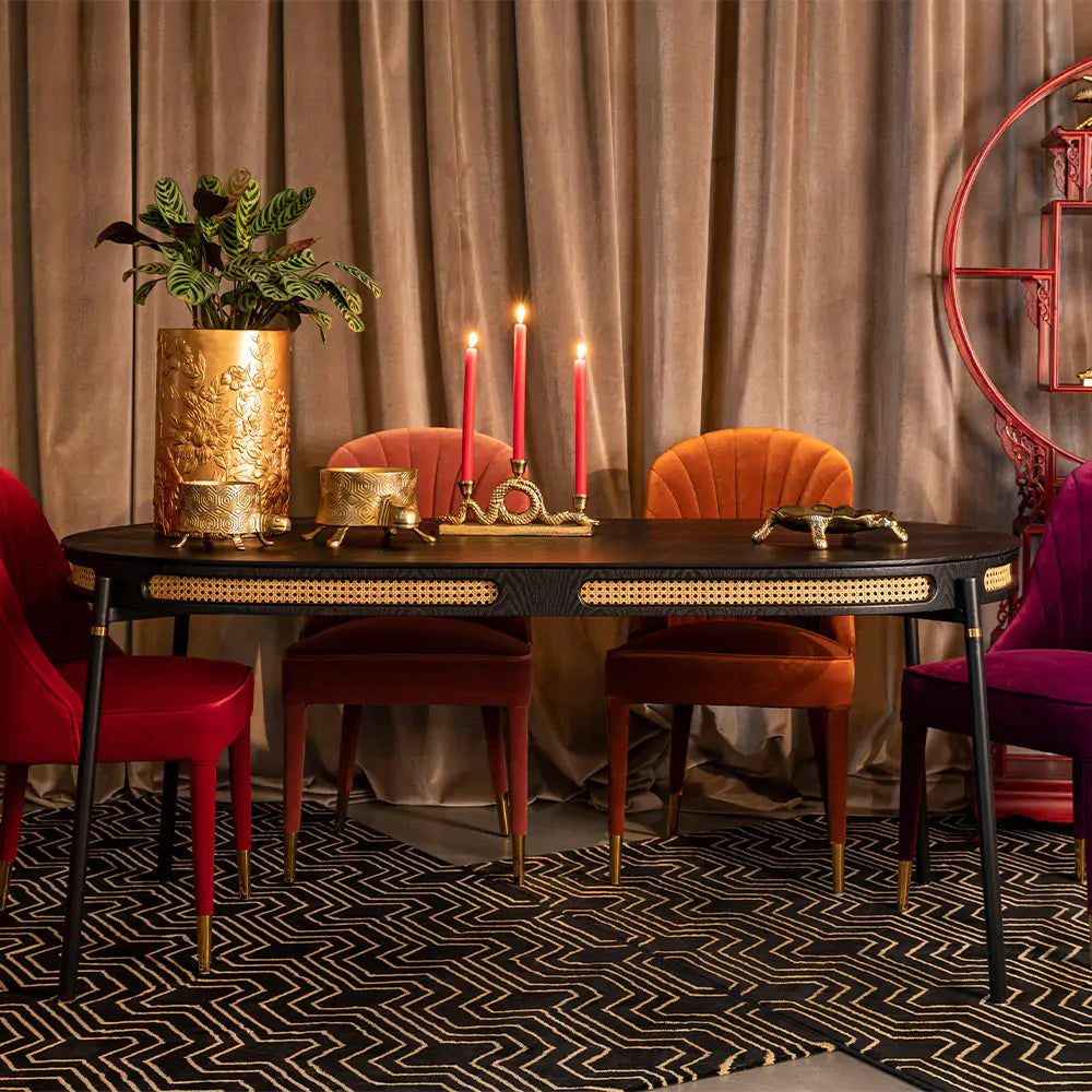Tisch Don't Stop The Webbing ist die Rückkehr von Rattan in einer neuen, mutigen Ausführung – im typischen Stil der Marke Bold Monkey. Seine elegante Form verbindet das beliebte Retro-Material mit modernem Flair. Abgerundete Kanten, schlanke Beine und subtile goldene Akzente sorgen dafür, dass dieses Modell Aufmerksamkeit erregt, sich aber auch leicht in verschiedene Einrichtungsstile einfügt. Es ist die ideale Wahl sowohl für Fans minimalistischer Lösungen als auch für Liebhaber des Mid-Century-Modern-Stils.