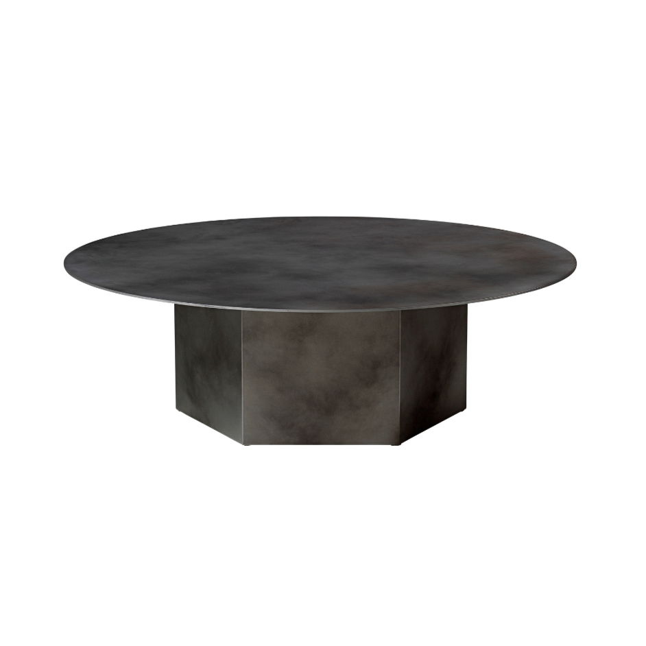 Tisch Epic ist eine moderne Interpretation einer klassischen Form, inspiriert von den Säulen griechischer Tempel und römischen architektonischen Strukturen. Entworfen von GamFratesi für GUBI, behält dieser Tisch seine monolithische Silhouette, erhält aber in der Stahlversion einen neuen, industriellen Charakter. Platten aus verzinktem und lackiertem Stahl werden von Hand bearbeitet, sodass jedes Exemplar eine einzigartige Textur und Farbentiefe aufweist.