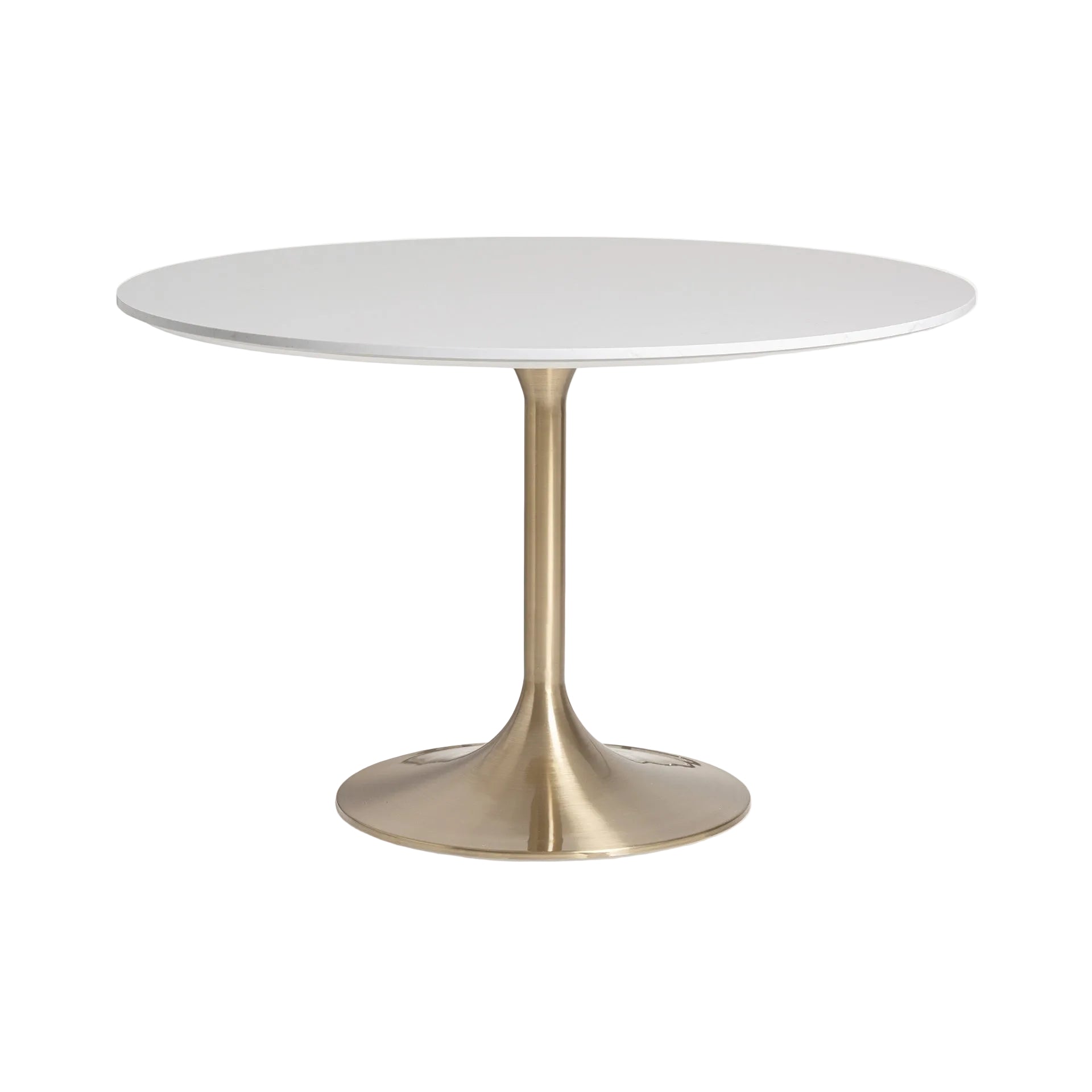 Runder Tisch KELHEIM weißer Porzellanstein mit goldener Basis