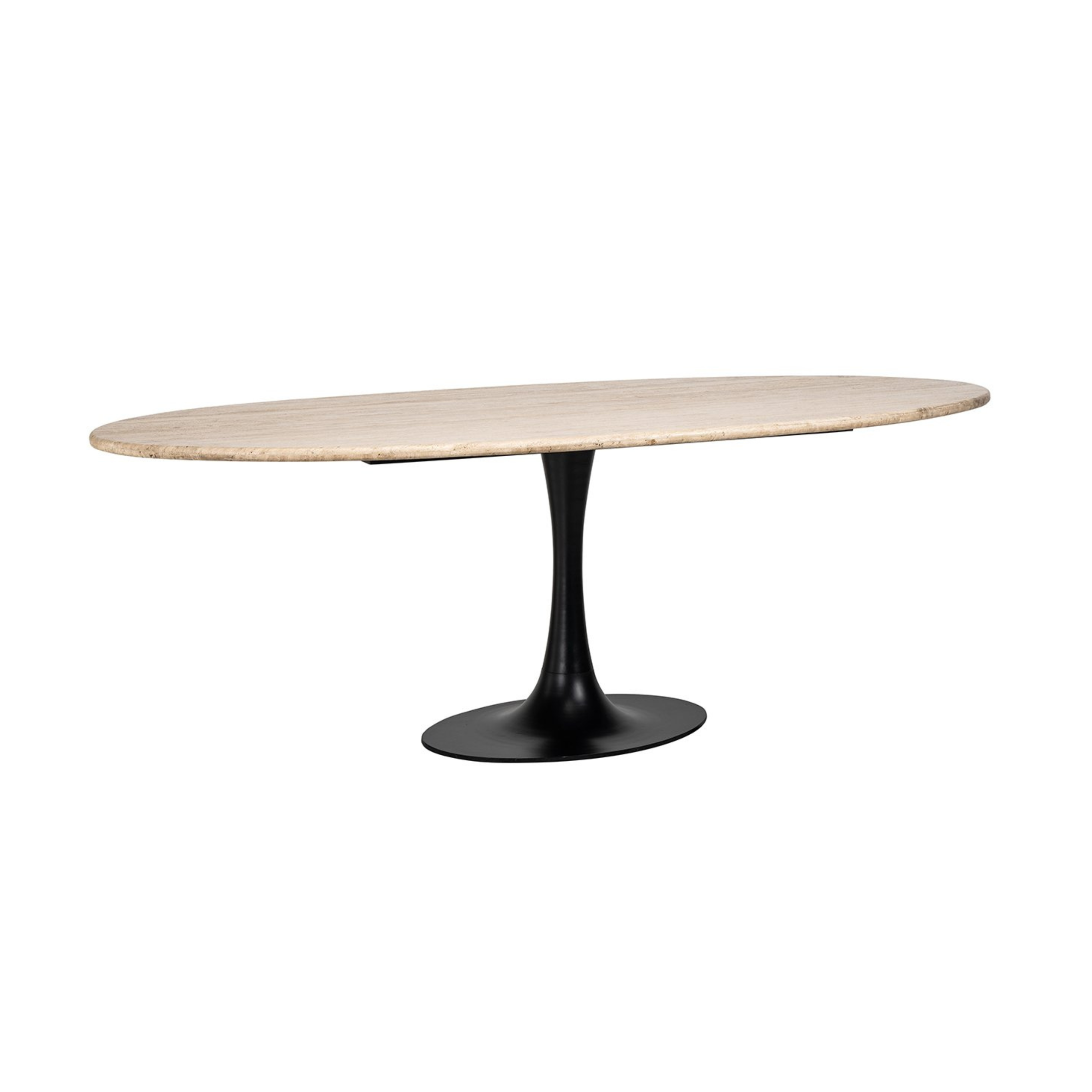Ovaler Tisch HAMPTON Travertin mit schwarzem Gestell