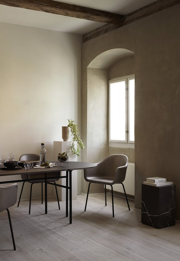 Die ovale Tischplatte verleiht dem Raum Weichheit und Harmonie und schafft eine einladende Atmosphäre für gemeinsame Mahlzeiten oder Treffen. Hergestellt aus Materialien von höchster Qualität, darunter elegantes Linoleum und robustes Holz, begeistert der Tisch Snaregade Oval mit seinem zeitlosen Charakter und der Liebe zum Detail.
