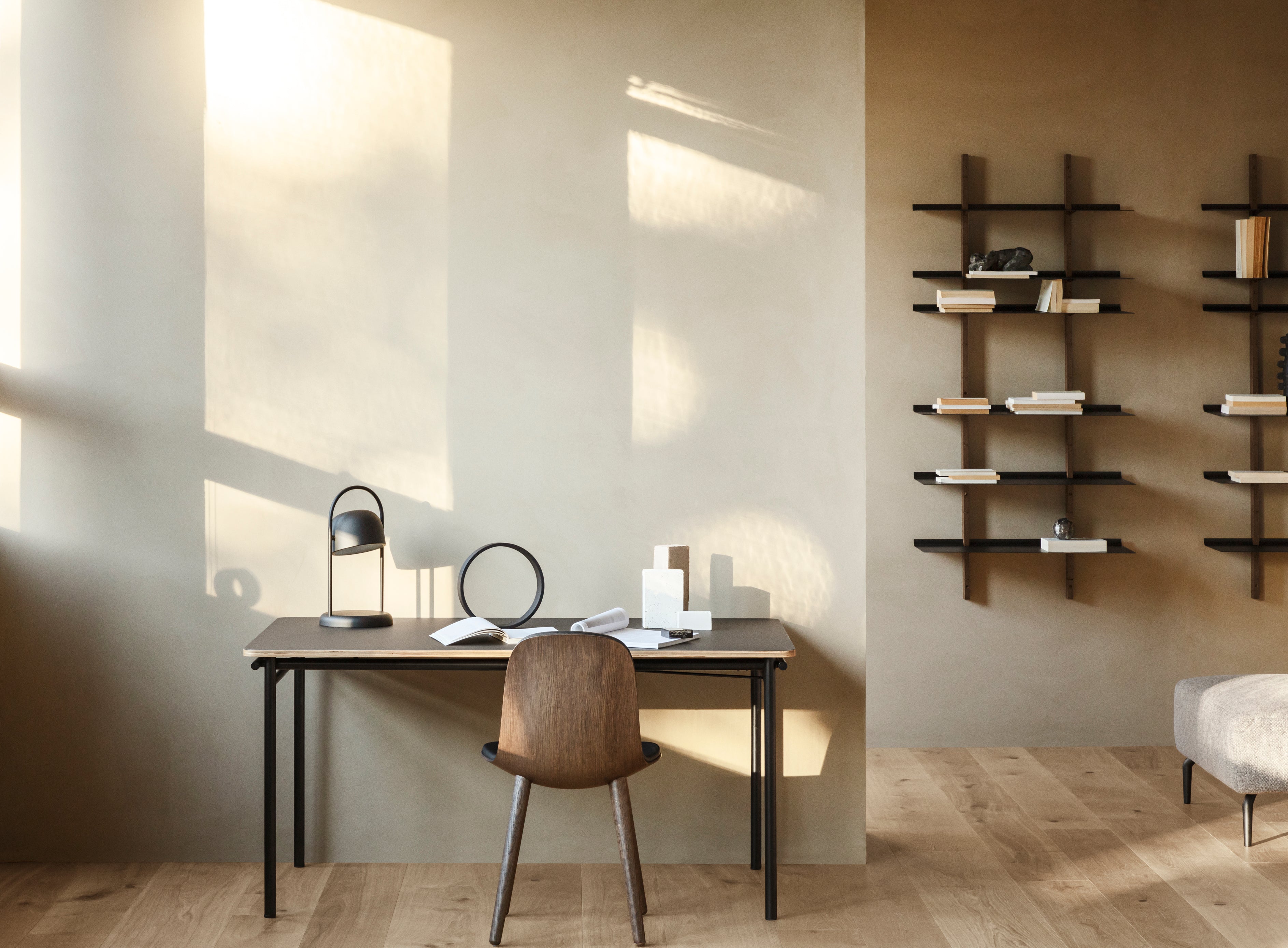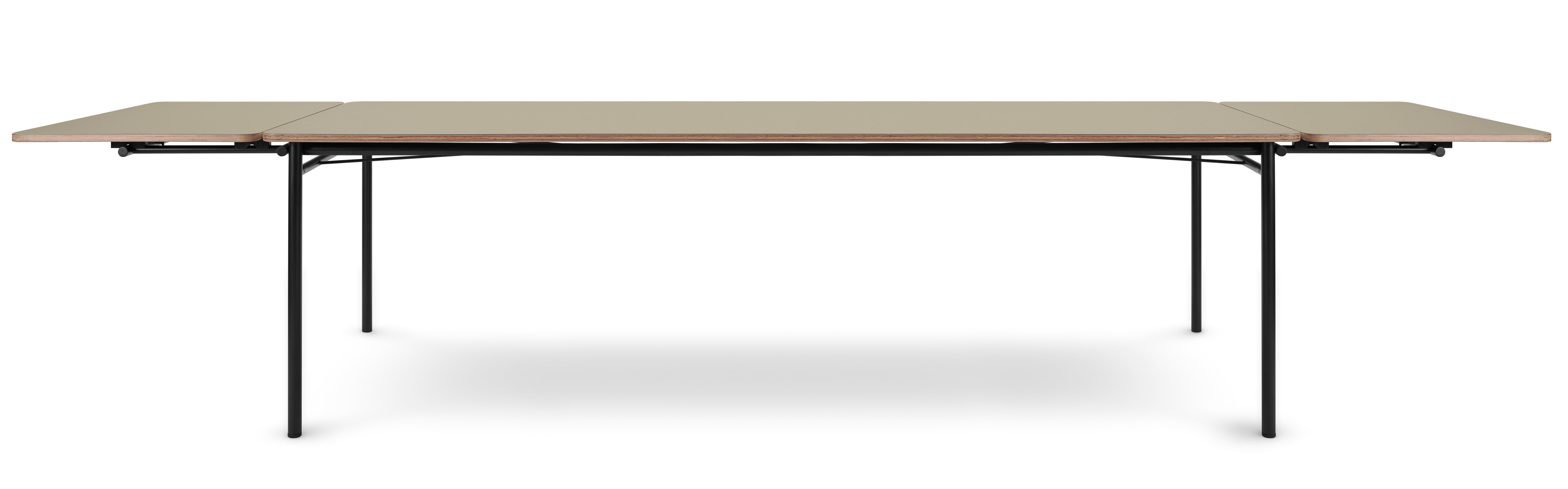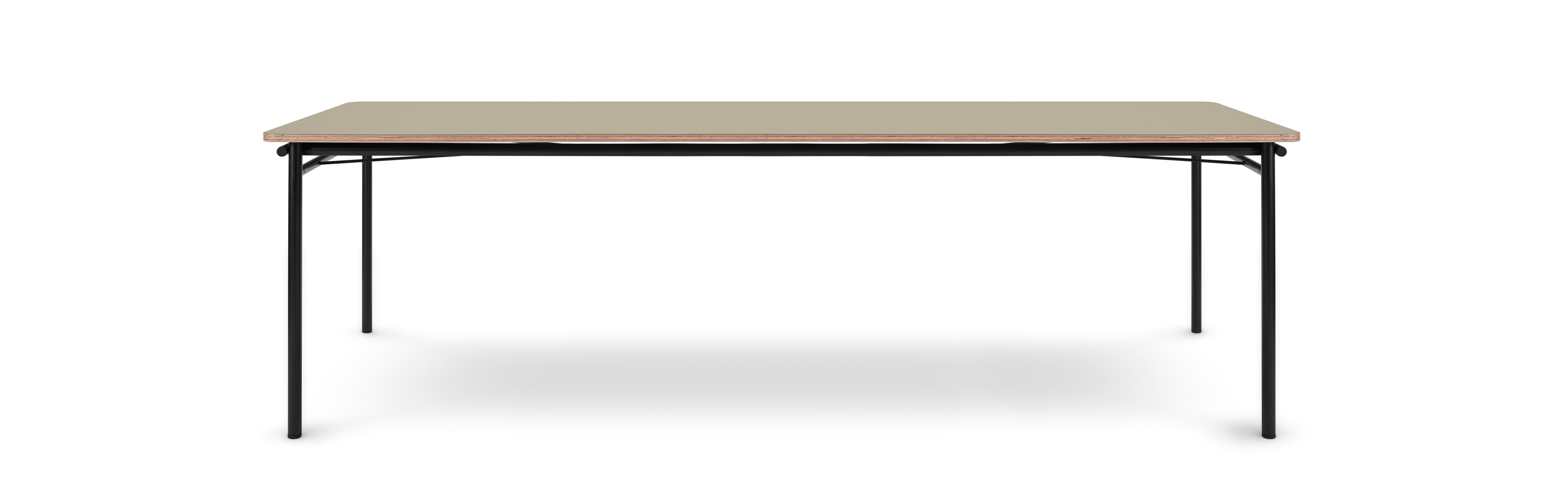 Der Tisch wurde aus langlebigen und robusten Materialien gefertigt, die Widerstandsfähigkeit gegen den täglichen Gebrauch gewährleisten und gleichzeitig ein modernes, elegantes Aussehen bewahren. Die Tischplatte aus Furnier, das mit Linoleum beschichtet ist, ist sowohl ästhetisch als auch praktisch, und die sichtbare Kante aus Sperrholz verleiht ihm einen rohen, industriellen Charakter. Die schlanken, pulverbeschichteten Stahlbeine runden das Gesamtbild ab und machen Taffel zu einem zeitlosen und besonders praktischen Möbelstück.