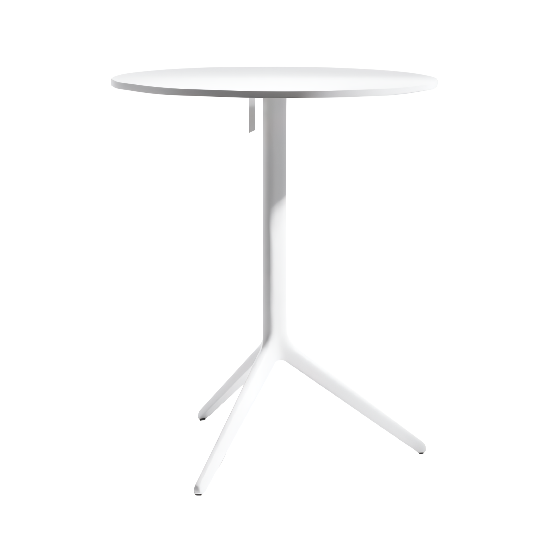 Der Unterbau aus pulverbeschichtetem Aluminium sorgt für Stabilität und Witterungsbeständigkeit. Die Tischplatte aus strapazierfähigem HPL-Laminat, erhältlich in Weiß oder Schwarz, ist kratzfest, UV-beständig und feuchtigkeitsresistent. Dank der klappbaren Konstruktion lässt sich die Tischplatte leicht in die vertikale Position bringen, was die Lagerung mehrerer Tische erleichtert.