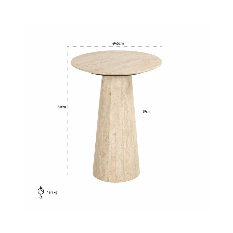 Beistelltisch Cavo vereint moderne Eleganz mit zeitlosem Minimalismus. Hergestellt aus beigem Marmor und Travertin, begeistert er mit der natürlichen Schönheit des Steins und der schlichten Form, die sich perfekt in verschiedene Innenraumgestaltungen einfügt. Es ist ein Marmortisch, der durch seine neutrale Farbgebung dem Raum Klasse und subtilen Charakter verleiht und zu einem funktionalen sowie dekorativen Element wird.