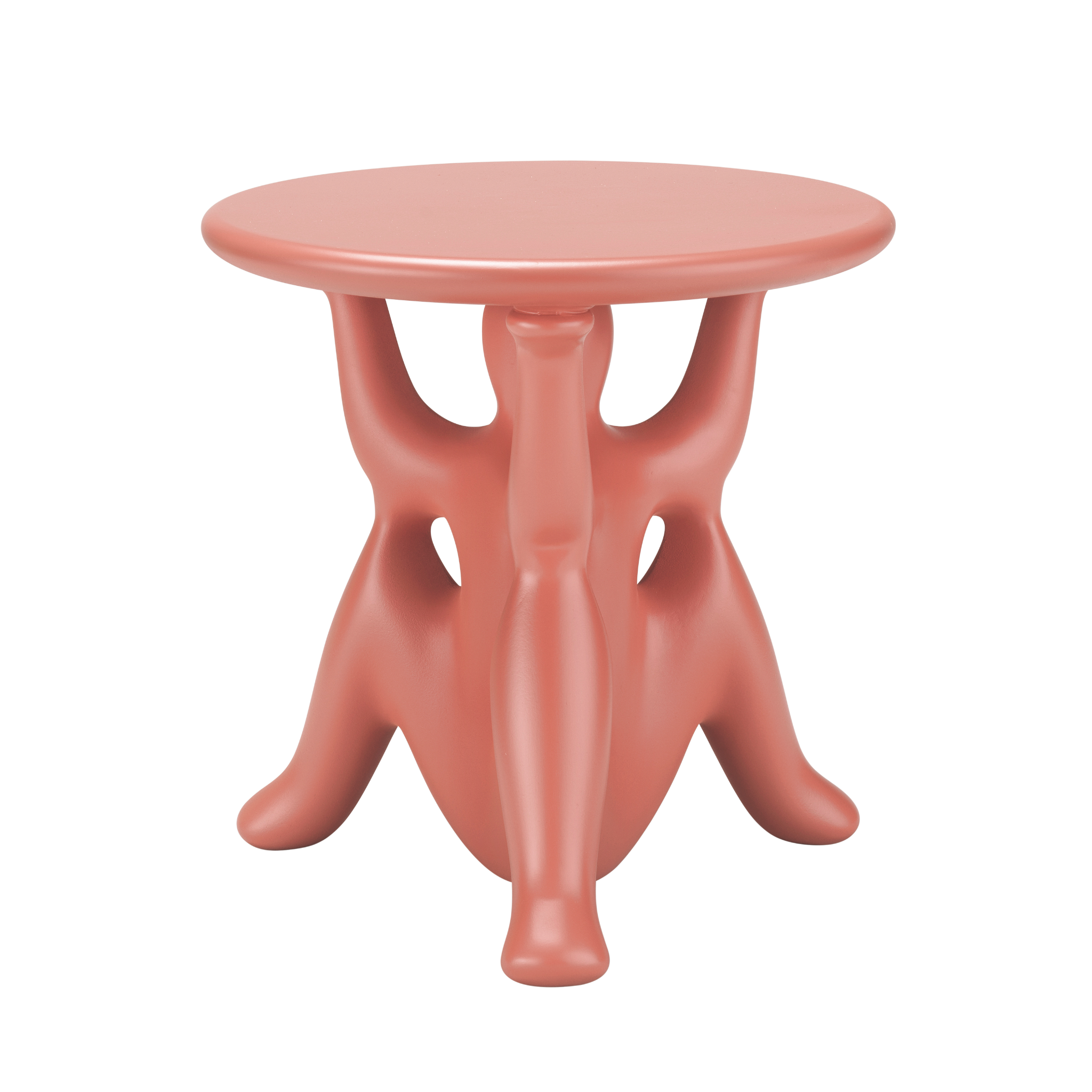 Der Tisch wurde vollständig aus strapazierfähigem Polyethylen gefertigt, das in einem Stück geformt ist, was Langlebigkeit und einfache Reinigung garantiert. Dank seiner skulpturalen Form und einem Durchmesser von 46,5 cm eignet sich Hhelpyourself hervorragend als Beistelltisch neben dem Sofa, dekoratives Element im Wohnzimmer oder als außergewöhnlicher Akzent in gewerblichen Räumen.