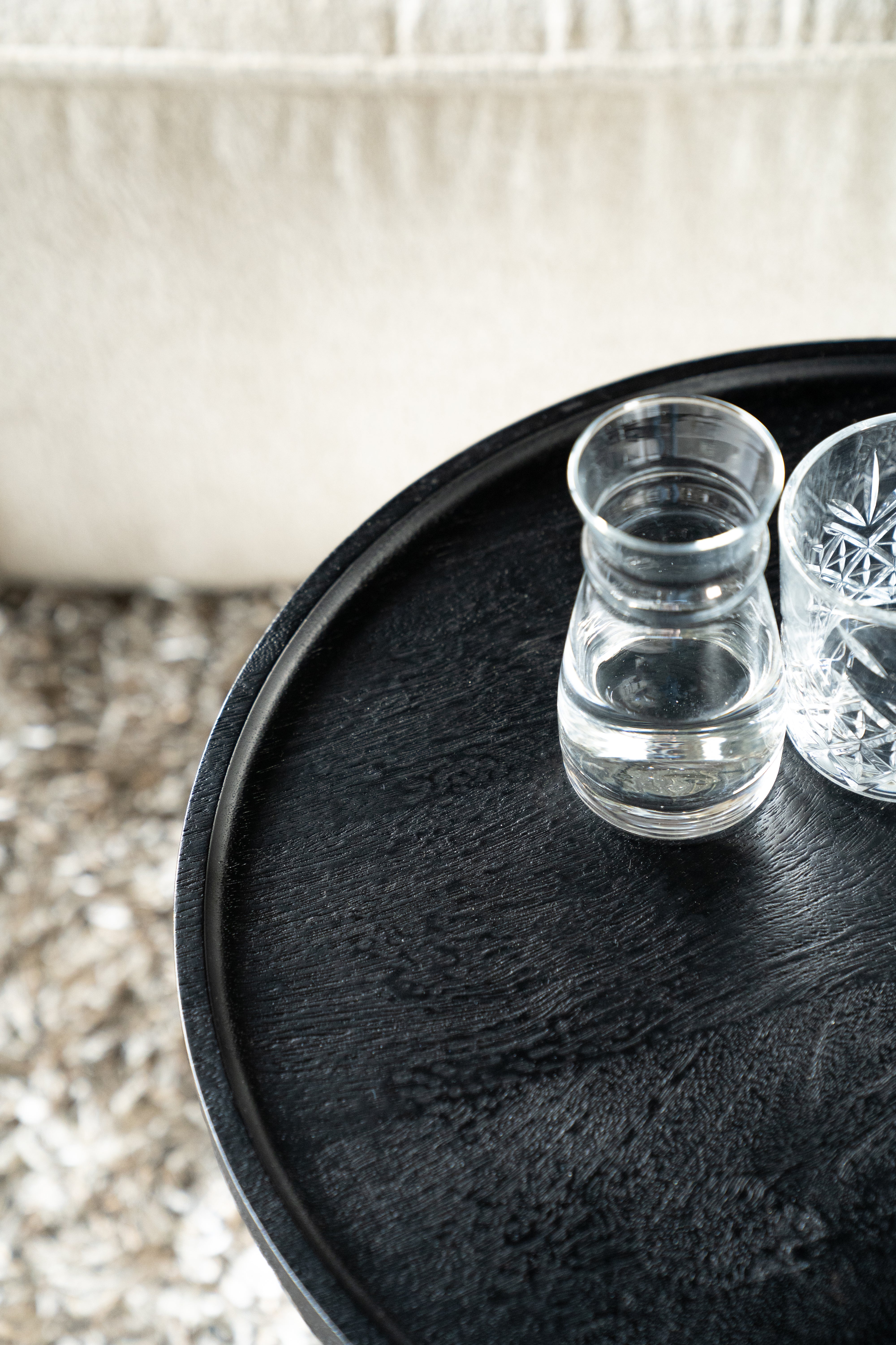 Ron vereint Ästhetik mit Funktionalität. Die robuste Konstruktion aus Mangoholz sorgt für Langlebigkeit, und die schützende Beschichtung bewahrt die Oberfläche und erleichtert die Pflege. Der Tisch ist leicht und bequem zu bewegen, sodass Sie ihn problemlos an wechselnde Bedürfnisse und Arrangements anpassen können. Es ist ein universelles Möbelstück, das gleichzeitig dekoriert und im Alltag dient.
