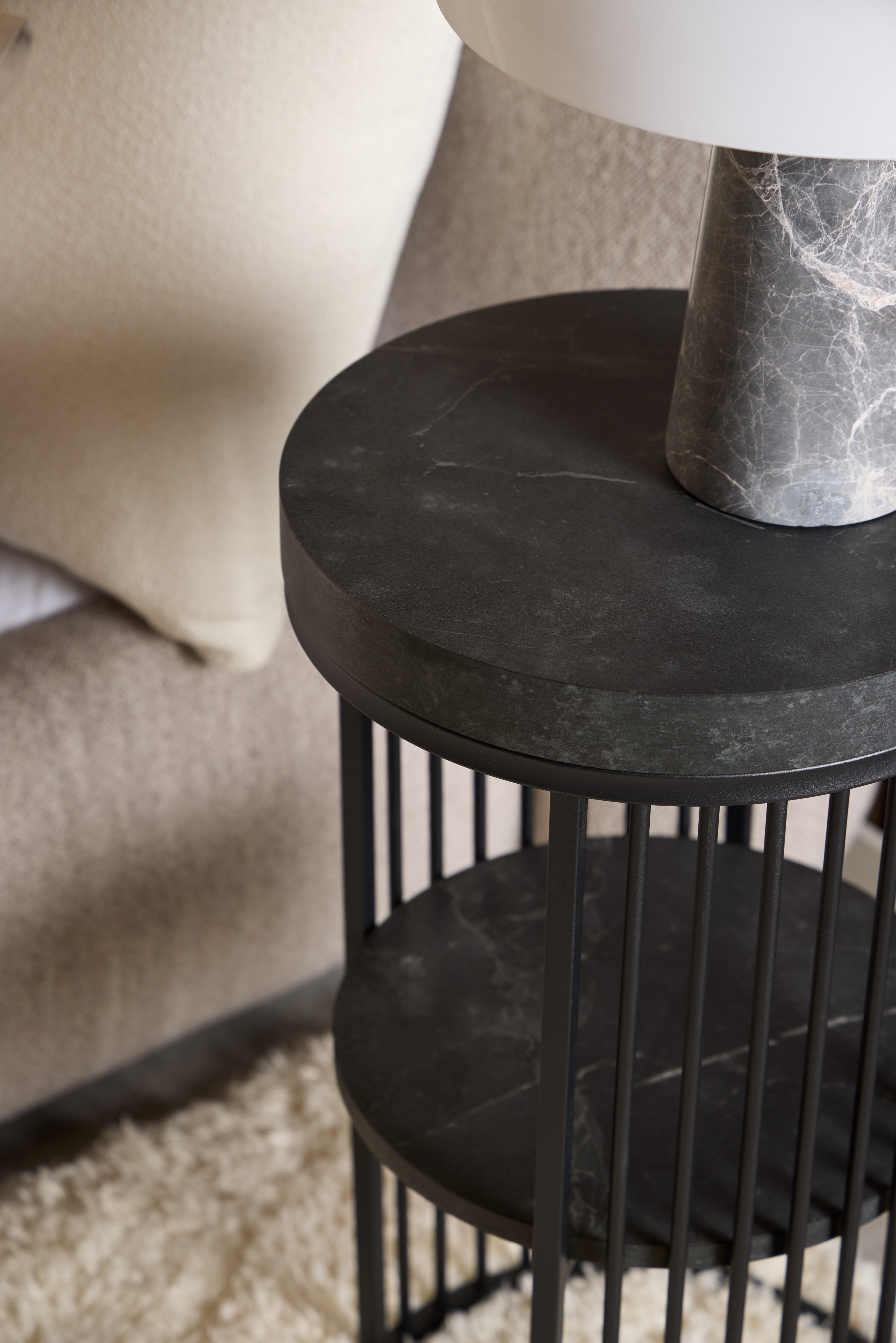 Tisch Strington eignet sich hervorragend als Nachtisch oder Beistelltisch im Wohnzimmer. Die solide Basis aus pulverbeschichtetem Stahl garantiert Stabilität und Langlebigkeit, während die kompakte, runde Form dafür sorgt, dass er auch in kleinere Räume perfekt passt. Es ist ein Möbelstück, das Funktionalität mit künstlerischem Ausdruck verbindet und einen beeindruckenden Akzent in jedem Raum setzt.