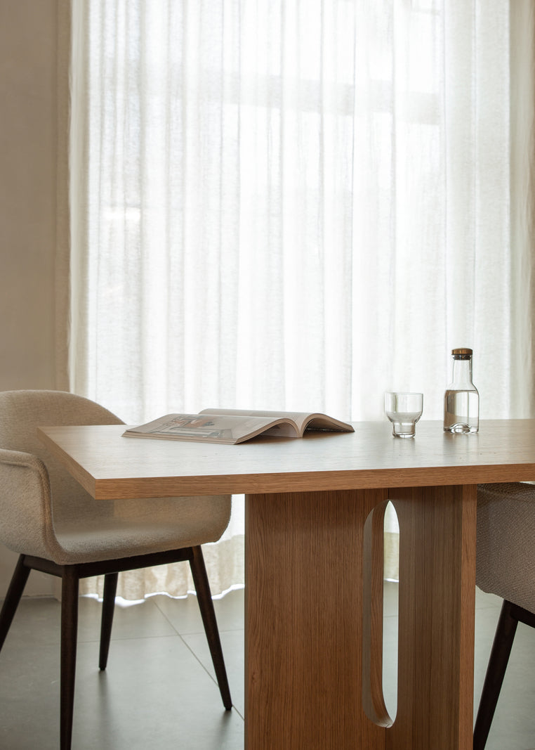 Der Tisch Androgyne in rechteckiger Form ist ein modernes und elegantes Angebot für das Esszimmer, das minimalistische Formen mit skulpturaler Ästhetik verbindet. Sein geometrisches Gestell verleiht ihm einen einzigartigen Charakter, und die natürliche Holzoberfläche fügt sich sowohl in klassische als auch in moderne Innenräume hervorragend ein. Es handelt sich um einen soliden, vollständig aus Holz gefertigten Tisch, der zum zentralen Punkt jedes Raumes wird und Funktionalität mit außergewöhnlichem Design vereint.