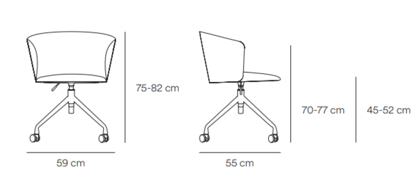 Voll ausgestattet mit Rädern, Stuhl In einer intensiven grauen Farbe ist eine Kombination aus Stil und Praktikabilität. Die Metallbasis ermöglicht eine reibungslose Drehung seiner Achse, die dem Benutzer unbegrenzte Bewegungsfreiheit ermöglicht. Dies wird besonders von Personen geschätzt, die lange Stunden am Schreibtisch verbringen oder an Besprechungen oder Konferenzen teilnehmen. Der breite Sitz bietet zusätzlichen Komfort, während sich die gepolsterte Rückenlehne perfekt an die Form des Körpers anpasst, wodurch der Muskeltonus reduziert und die Wirbelsäule unterstützt wird. Der ADD -Stuhl ist nicht nur eine ästhetische Wahl, sondern vor allem ein praktisches Element des Büro- oder öffentlichen Raumausrüstung.