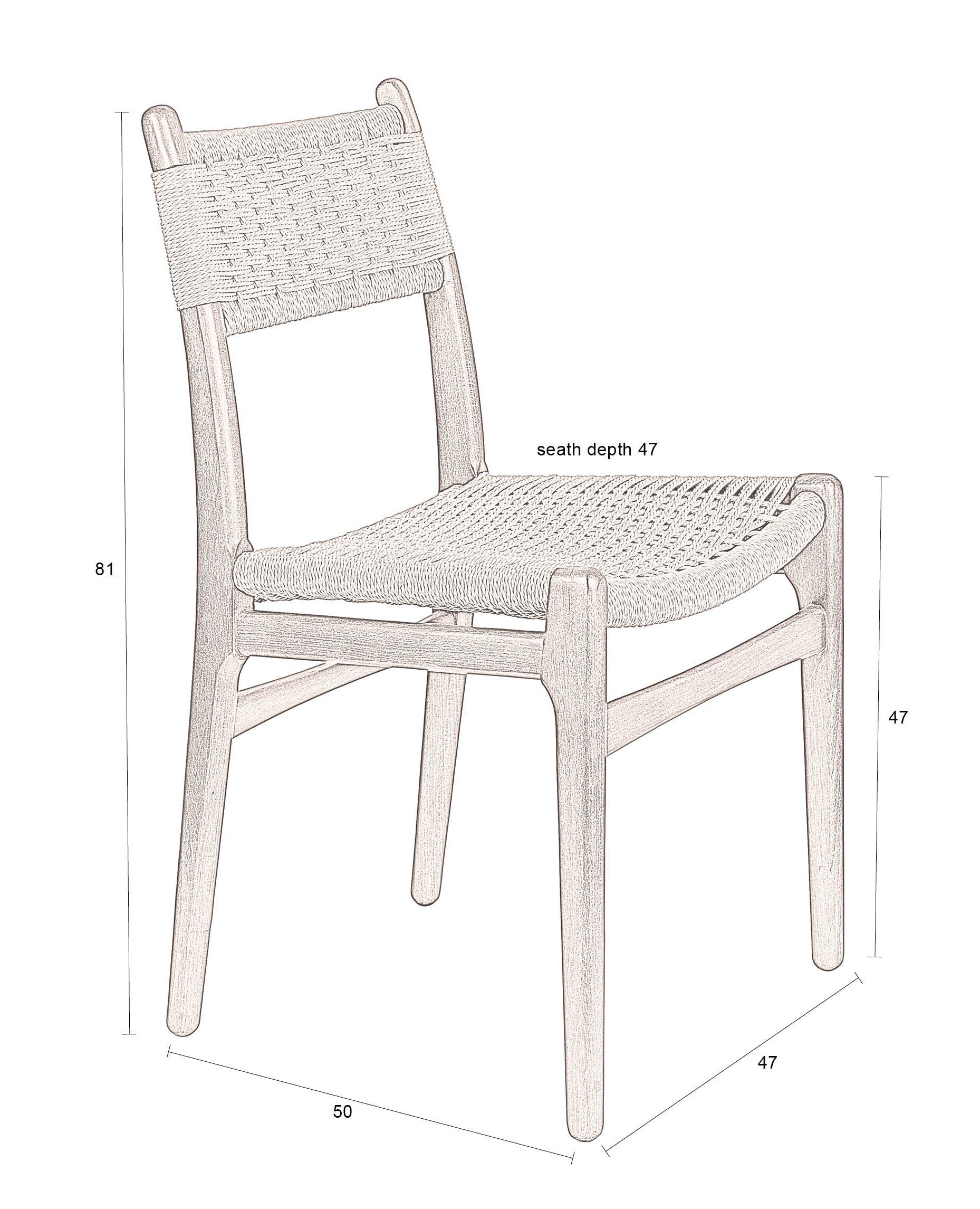 Die einzigartigen Merkmale des Cecile -Stuhls sind ein wunderschön fertiger Holzrahmen und ein auf einem geflochtener Seil eingerichteter Sitz und Rücken. Diese Kombination verleiht dem Stuhl einen charakteristischen Look, der den Raum sofort mit einer angenehmen Atmosphäre füllt. Der Cecile -Stuhl verfügt über einen komfortablen Sitz, der auch bei langen Besprechungen Komfort bietet. Darüber hinaus kombiniert dieser Stuhl leicht mit anderen Möbelstilen und verleiht dem Innenraum einen warmen Look mit einer Vintage -Note.