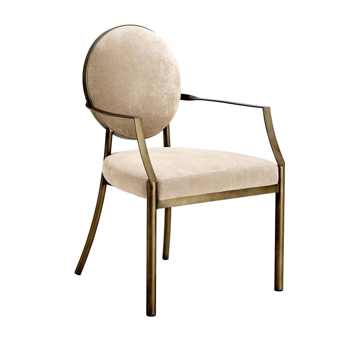 Erinnern Sie sich an die Pracht und die Extravaganz der Jazz -Ära, Esszimmerstuhl Schreiber nimmt Sie rechtzeitig, direkt ins Herz der verrückten 1920er Jahre. Das Metalldesign mit einem matten goldenen Finish scheint wie die hellen Lichter der großen Stadt, während weiche Samtpolster in Grau mit Zigarrenrauch verbunden ist und in einer der unterirdischen Jazzclubs in der Luft schwebt.