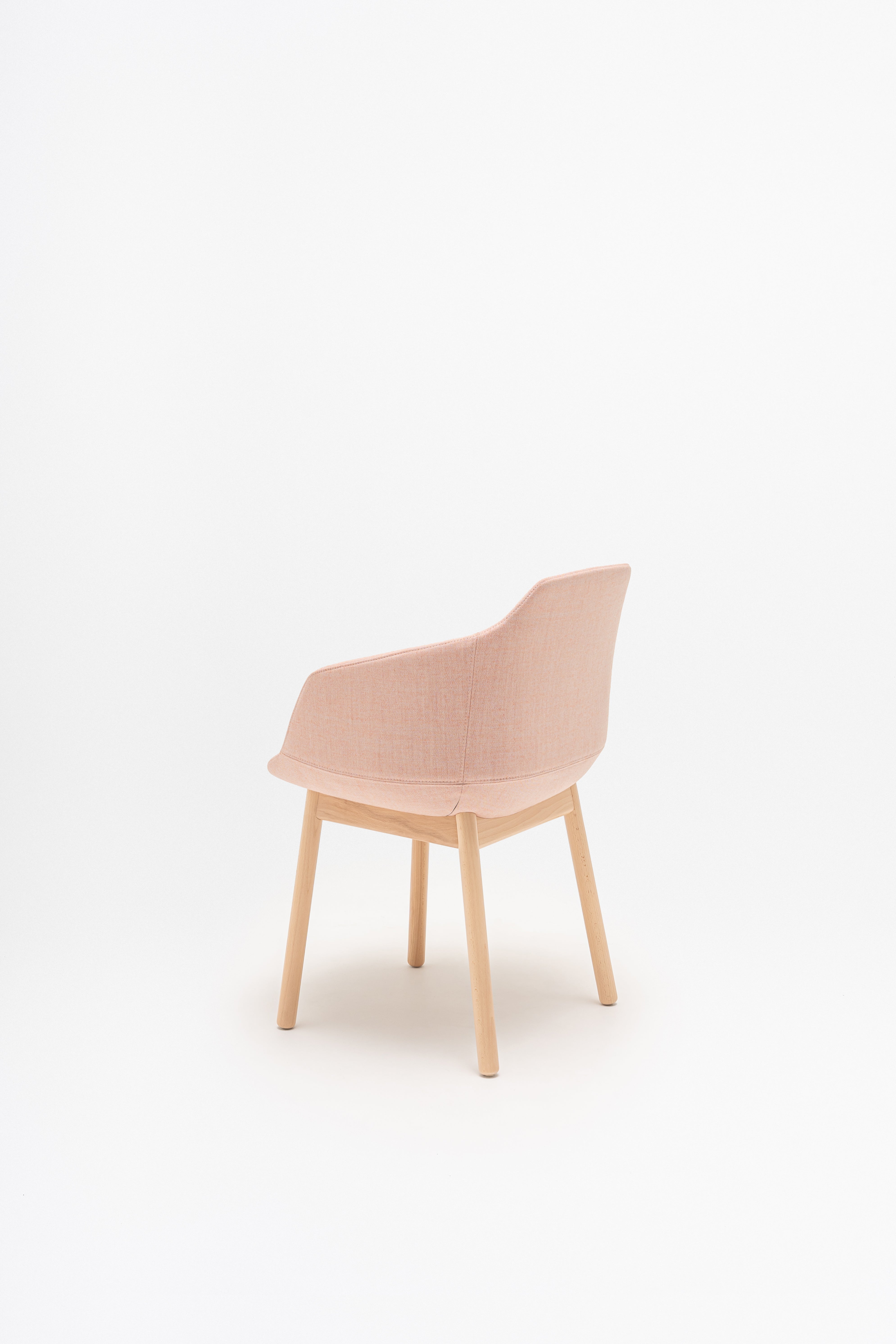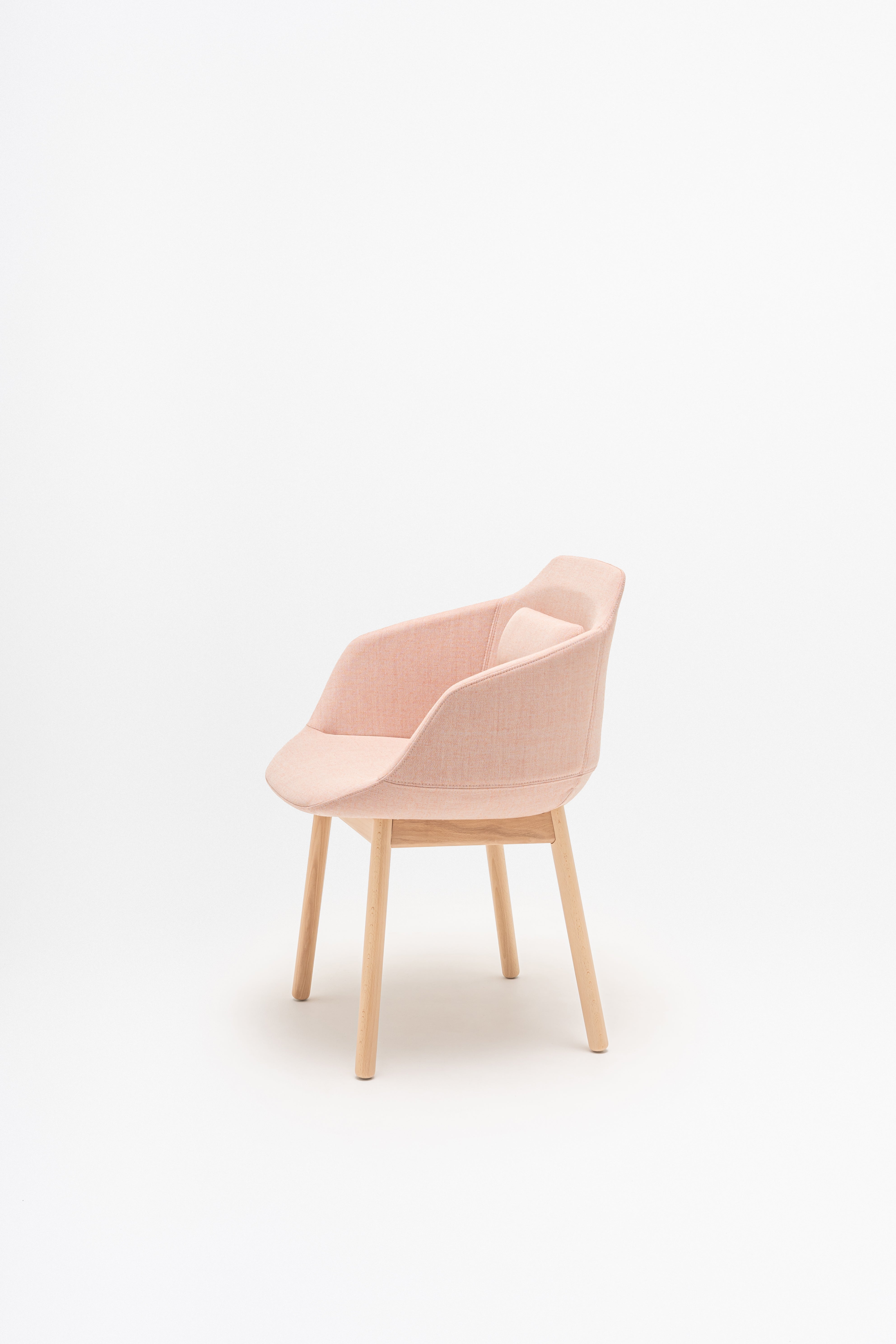 Stuhl Ultra mit einer Holzbasis, die von Krystian Kowalski entworfen wurde, ist eine domestizierte Version des Modells, die die Funktionalität mit einem gemütlichen Design kombiniert. Das charakteristische gepolsterte Kissen, das am Rücken befestigt ist, erhöht den Komfort des Gebrauchs, und die vier legierte Basenbasis fügt Wärmestuhl und Eleganz hinzu. Dank dessen ist Ultra nicht nur in Büros, sondern auch in Wohnräumen und gastronomischen Räumlichkeiten perfekt. Es ist ein vielseitiges Möbel, ideal für Konferenzräume, Esszimmer und Urlaubszonen.
