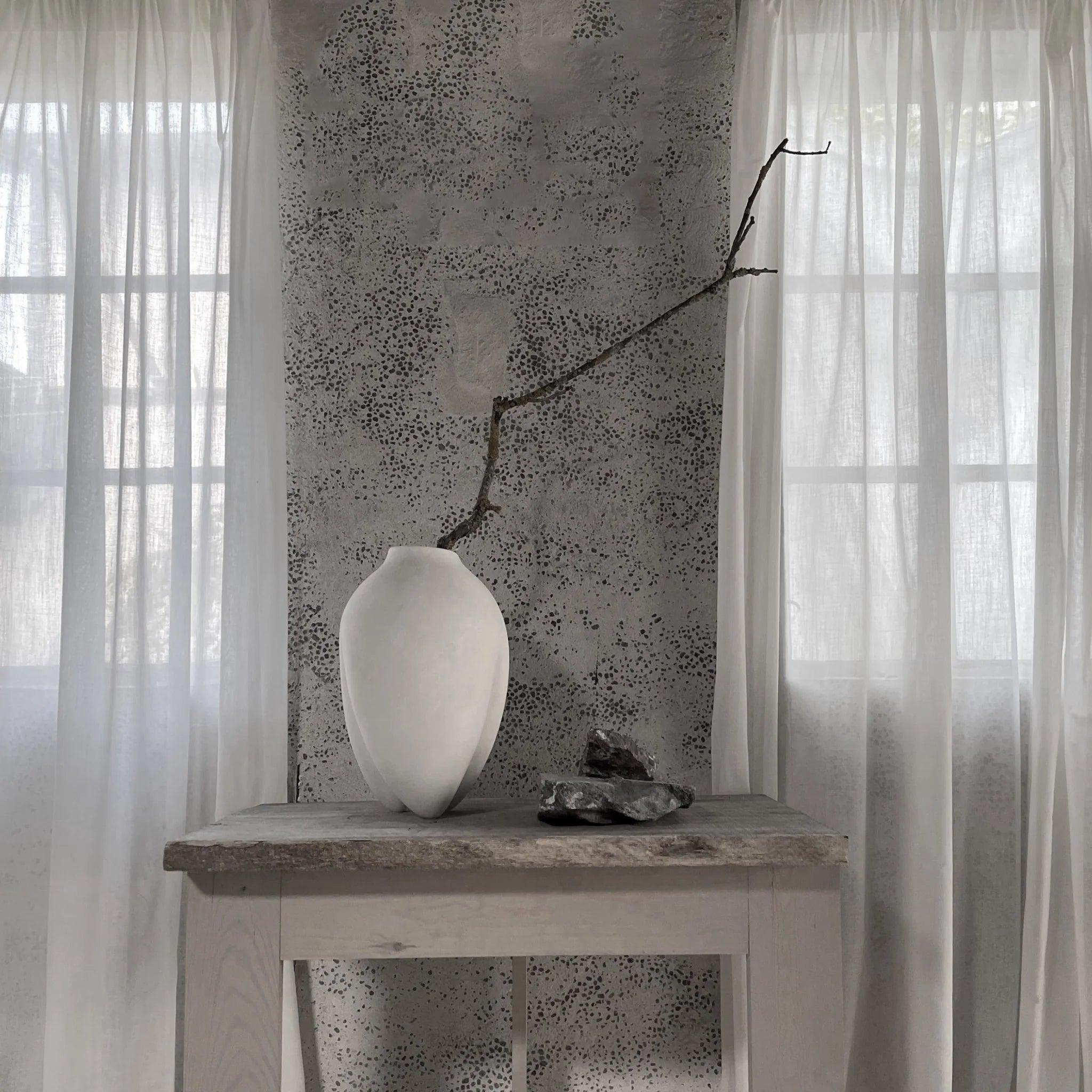 Sumo feiert den menschlichen Körper. In Anlehnung an den japanischen Sport Sumo haben alle Vasen eine großzügige Größe und Form und stehen auf schmalen, nach oben gerichteten Füßen. Alle Vasen haben unterschiedliche Öffnungen, von traditionellen schmalen Öffnungen bis hin zu doppelten Öffnungen und tief eingravierten Öffnungen. Die Sumo-Kollektion konzentriert sich auf den Kontrast zwischen bekannten Vasenformen und dem Hinzufügen von künstlerischeren, abstrakten Ideen und Details, die unsere individuelle Wahrnehmung der Vasenform in Frage stellen.