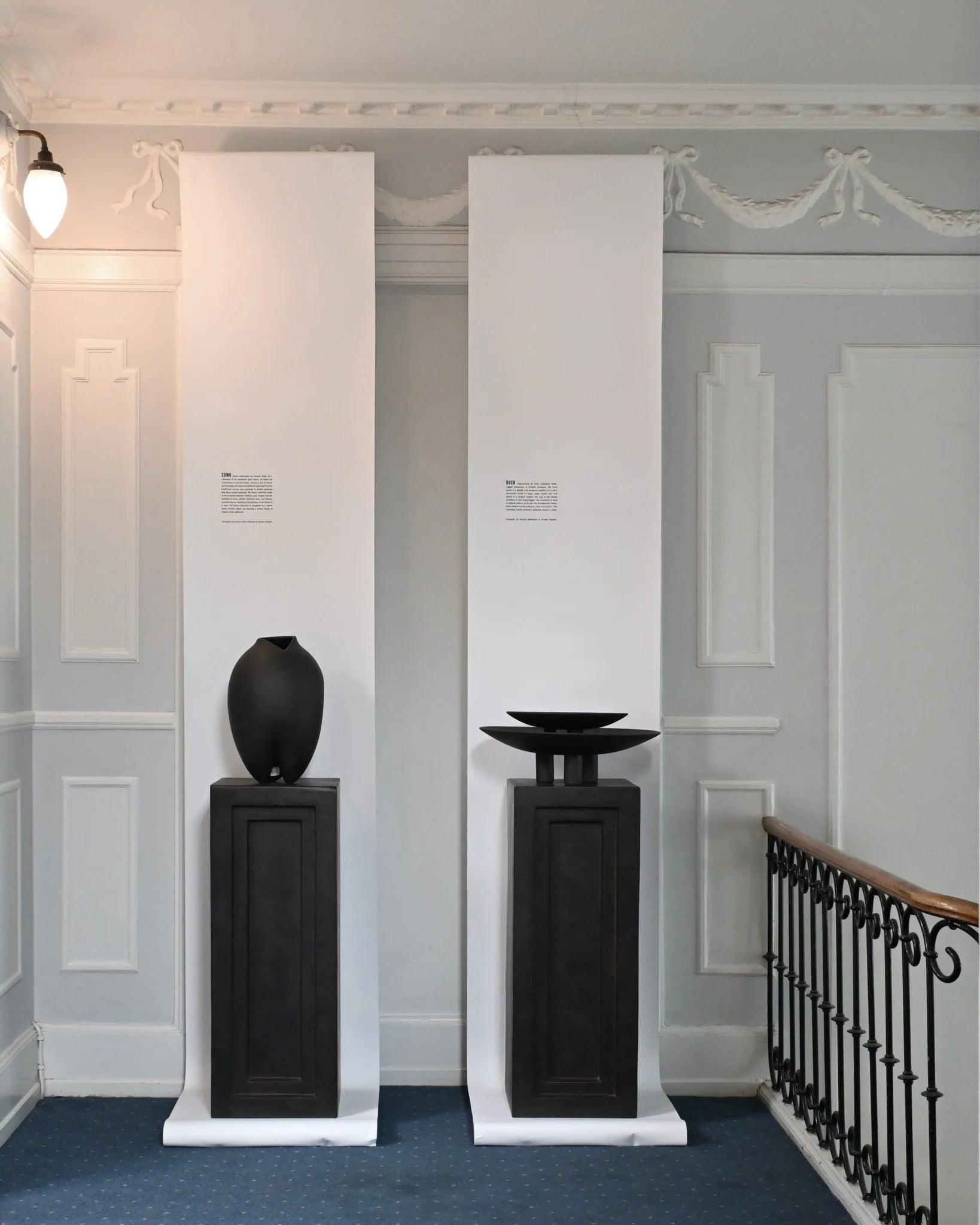 Sumo feiert den menschlichen Körper. Inspiriert von dem japanischen Sport Sumo haben alle Vasen eine großzügige Größe und Form und stehen auf schmalen, nach oben gerichteten Füßen. Alle Vasen verfügen über unterschiedliche Öffnungen, von traditionellen schmalen Öffnungen bis hin zu doppelten Öffnungen und tiefen, kunstvoll gestalteten Öffnungen. Die Sumo-Kollektion konzentriert sich auf den Kontrast zwischen bekannten Vasenformen und dem Hinzufügen von künstlerischeren, abstrakten Ideen und Details, die unsere individuelle Wahrnehmung der Vasenform in Frage stellen.