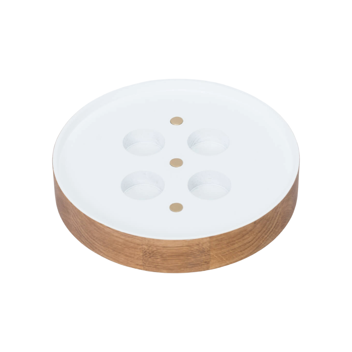 Teelichthalter Enlightenment 4 ist eine Verbindung von der Einfachheit des natürlichen Holzes mit dem subtilen Glanz des Lichts. Das im Rahmen des Łódź Design Festivals mit dem Titel „Must Have 2017“ ausgezeichnete Design zeichnet sich durch seinen einzigartigen Stil und durchdachte Form aus. Entzündete Teelichter in diesem Accessoire schaffen eine außergewöhnliche Atmosphäre, und der holzige Teelichthalter wird zu einem eleganten Schmuckstück für den Tisch oder die Kommode.