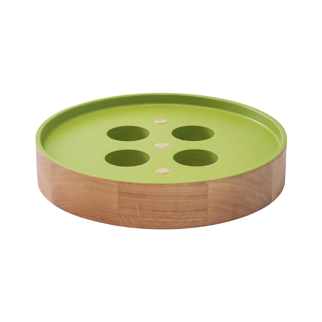 Minimalistische Zylinder aus edlem Holz und messingfarbene Details sorgen dafür, dass der dekorative Teelichthalter sowohl zu modernen als auch zu klassischen Innenräumen passt. Es handelt sich um einen zeitlosen Eichenholzteelichthalter, der sich wunderbar mit verschiedenen Arrangements kombiniert und ihnen Charakter verleiht. Die Version Enlightenment Color bietet zudem die Möglichkeit, eine Oberflächenbehandlung in Farben zu wählen, die zum Dekor des Hauses passen, was ihn zu einem idealen, praktischen und effektvollen Accessoire macht. Regelmäßiges Ölen mit natürlichem Öl erhält die Haltbarkeit und den Charme, sodass der Teelichthalter über viele Jahre hinweg schön bleibt.