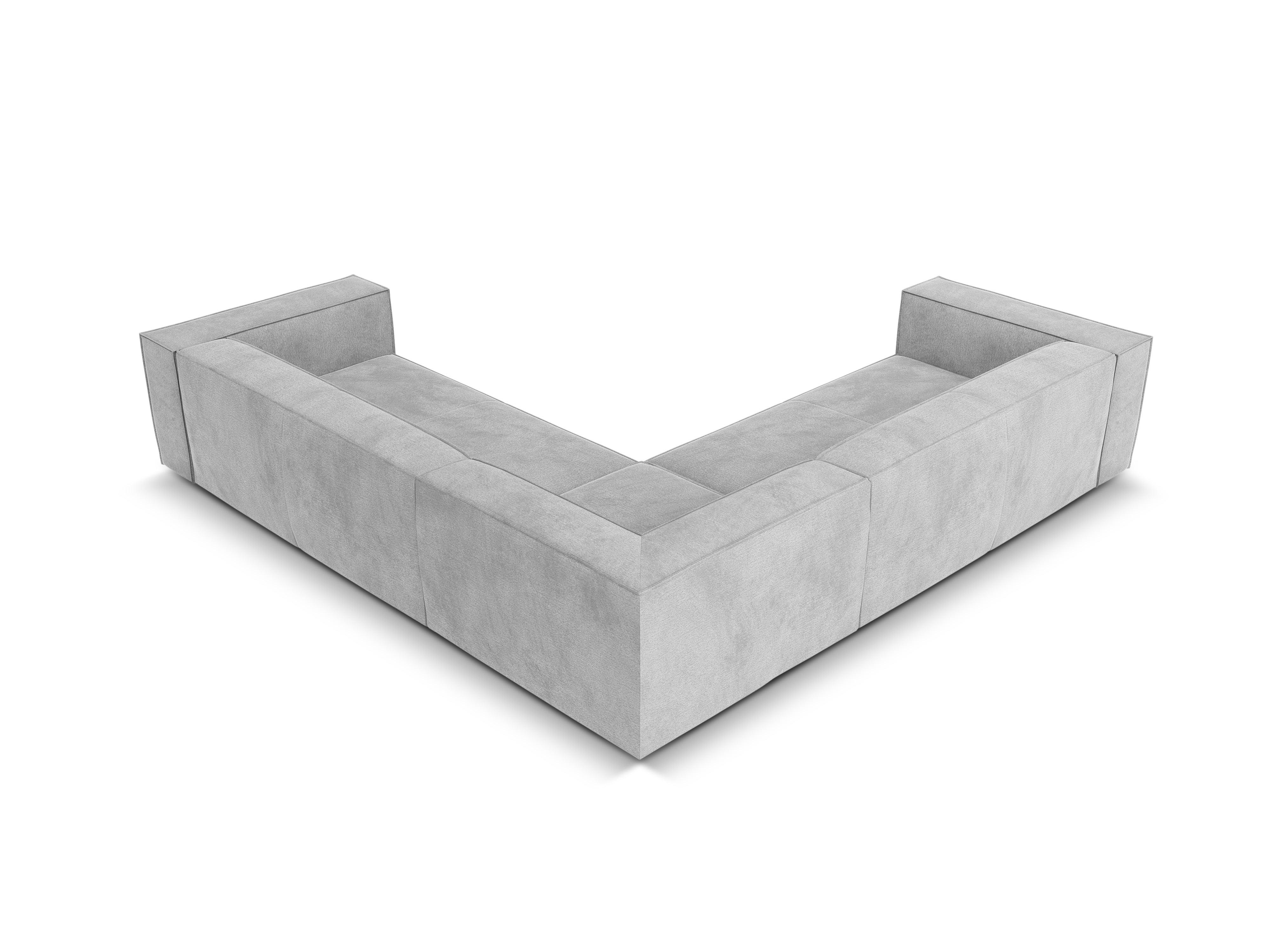 Ecksofa für fünf Personen Madame mit ihrem markanten Charakter und eleganter Ausführung ist die perfekte Wahl für ein modernes Wohnzimmer. Die tiefe Sitzfläche ist sowohl ideal für gesellige Zusammenkünfte als auch für entspannende Momente nach einem langen Tag. Sie ermöglicht ein bequemes Entspannen in lockeren Positionen. Mit ihrer niedrig gehaltenen Silhouette, breiten Armlehnen und Rückenlehnen schafft sie eine gemütliche Form.