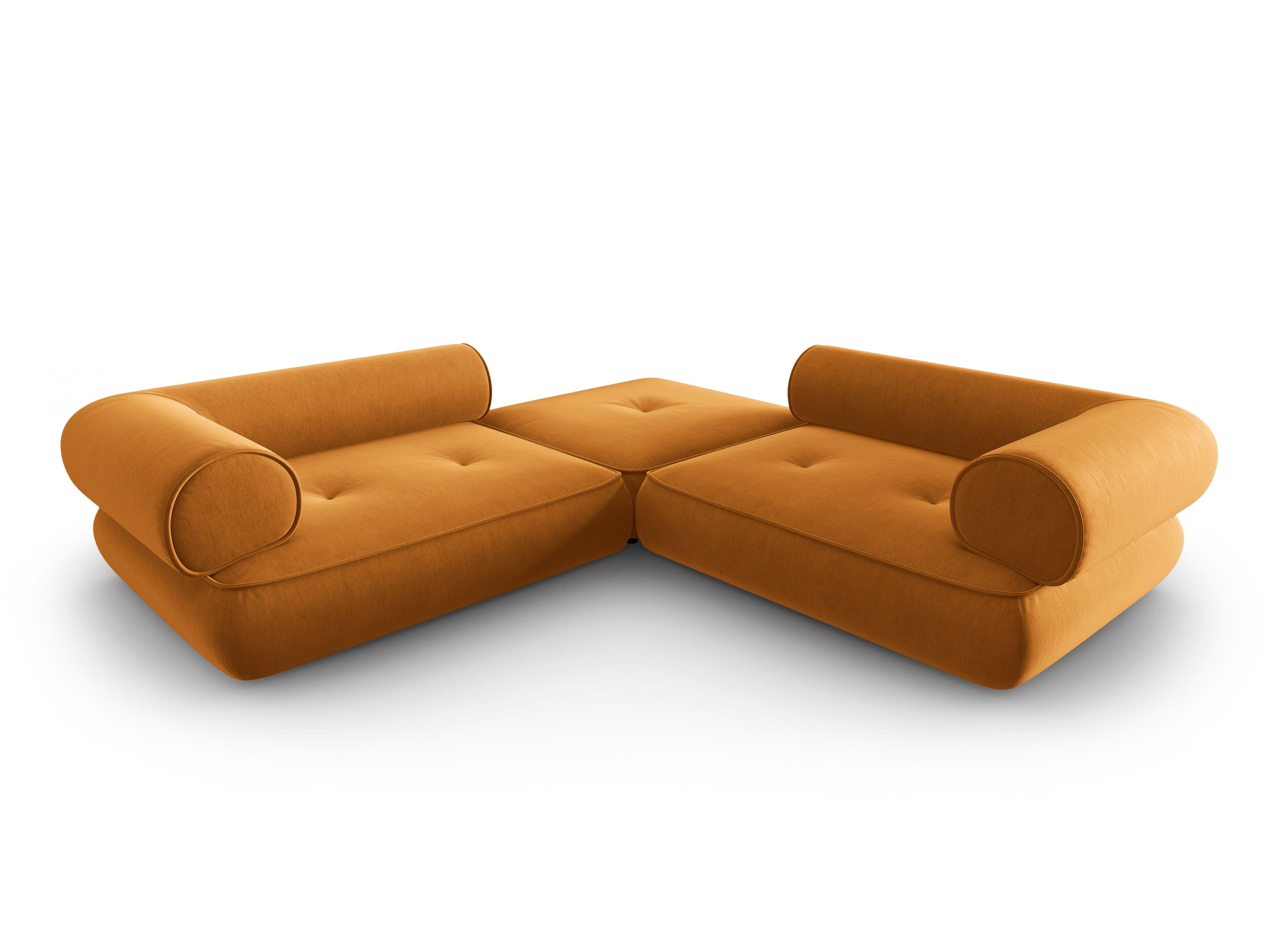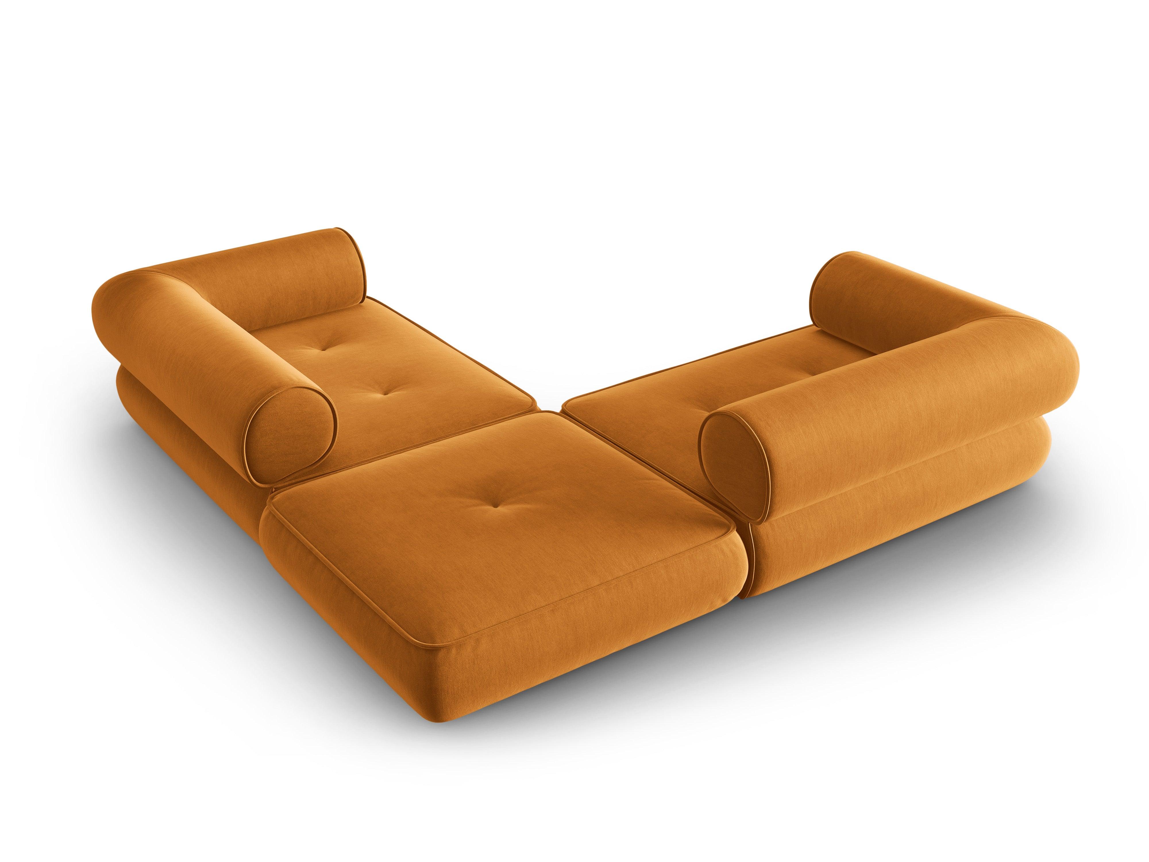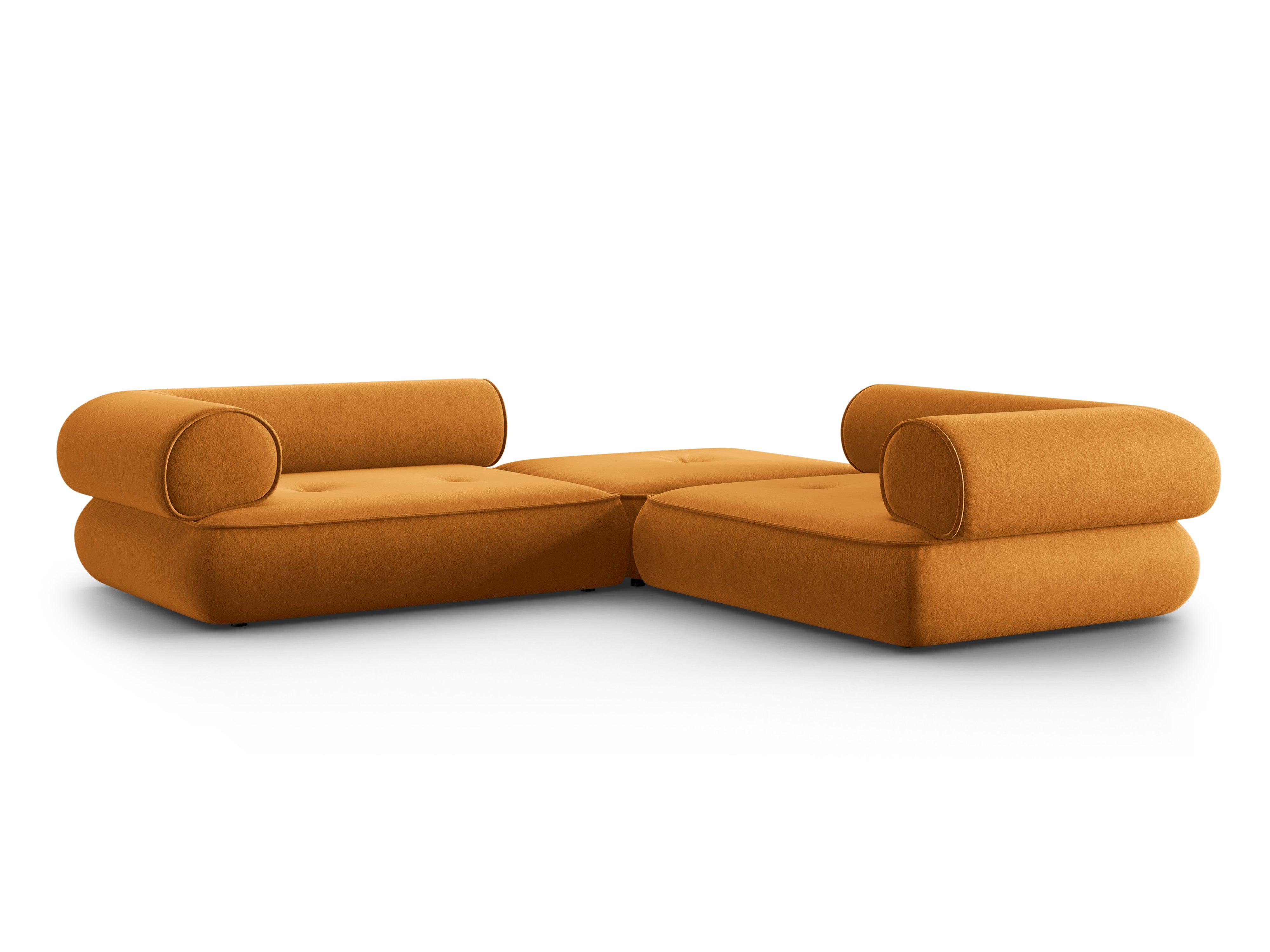 Stylischer Ecksofa Lily verleiht jedem Raum einen Hauch von zeitloser Eleganz. Die außergewöhnliche Form ist das Ergebnis eines modernen Ansatzes für zeitlose Möbelformen. Die abgerundeten Kanten der Sitzflächen haben eine äußerst originelle Form, und die Rückenlehnen bieten den richtigen Komfort beim Entspannen. Der Bezug aus Chenil-Stoff ist nicht nur praktisch, sondern auch angenehm im Griff.